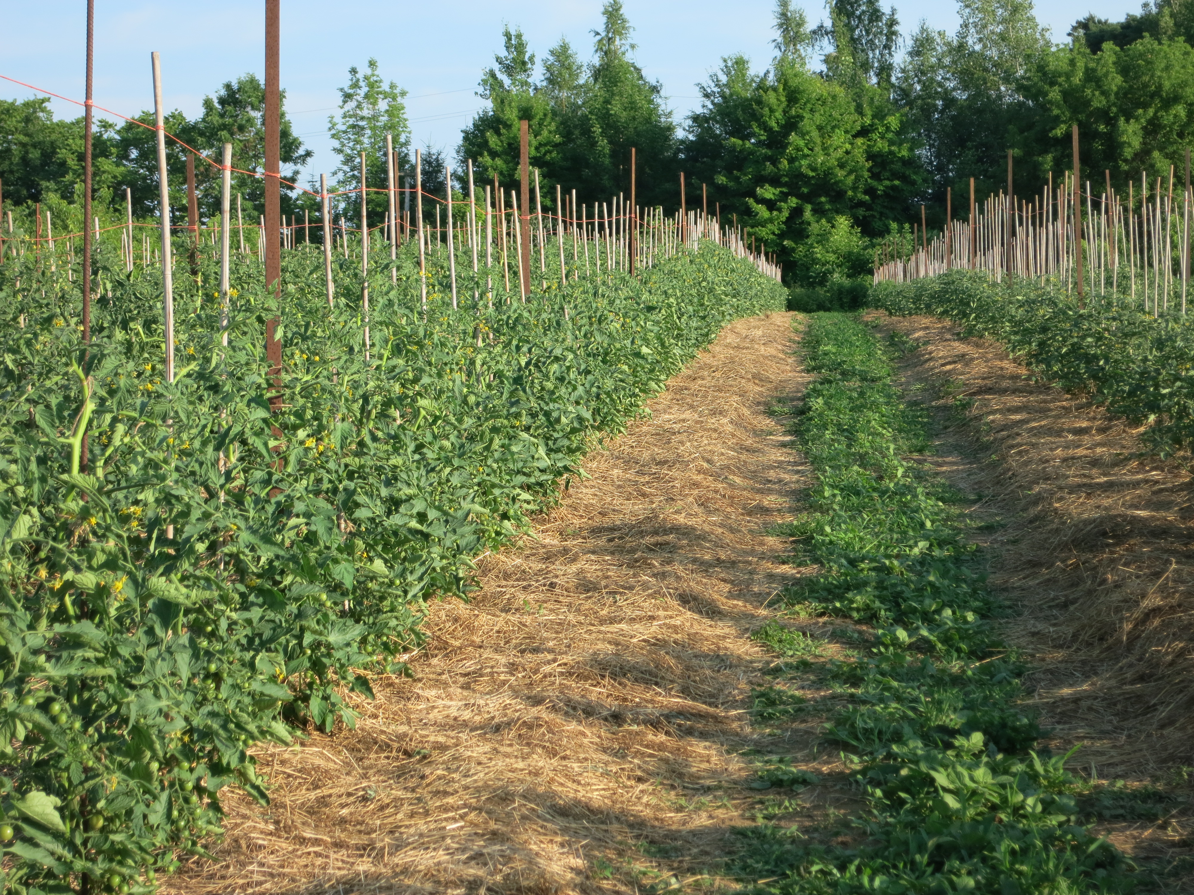 Hot peppers & cucumbers are nicely cleaned but the eggplants are still looking for some attention. Bales are standing by to mulch this area before it explodes with weeds again!