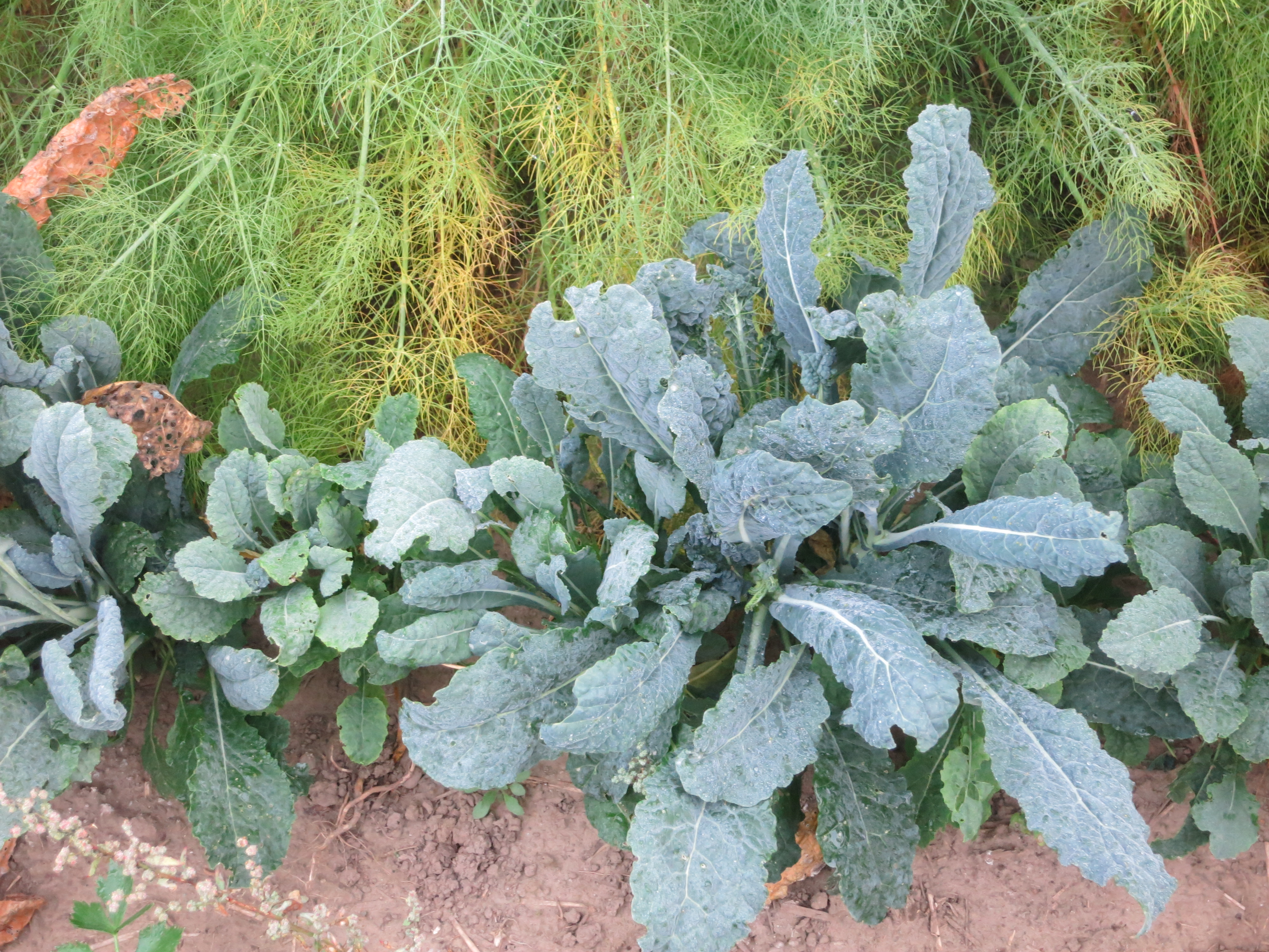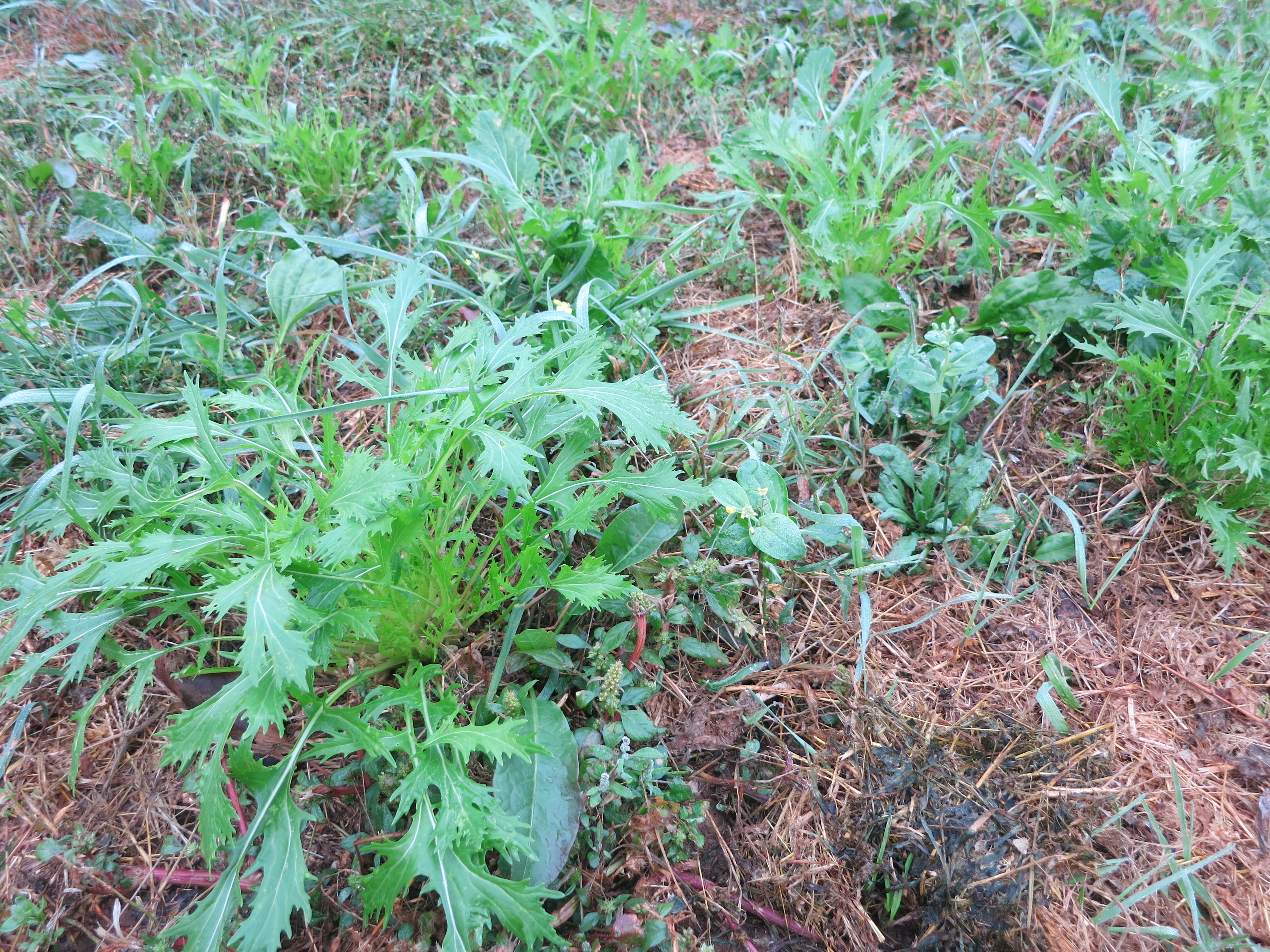 This is kale growing where we had it about 5 years ago. The spot has been planted to trees now, but still a few hardy kale plants come back each year.