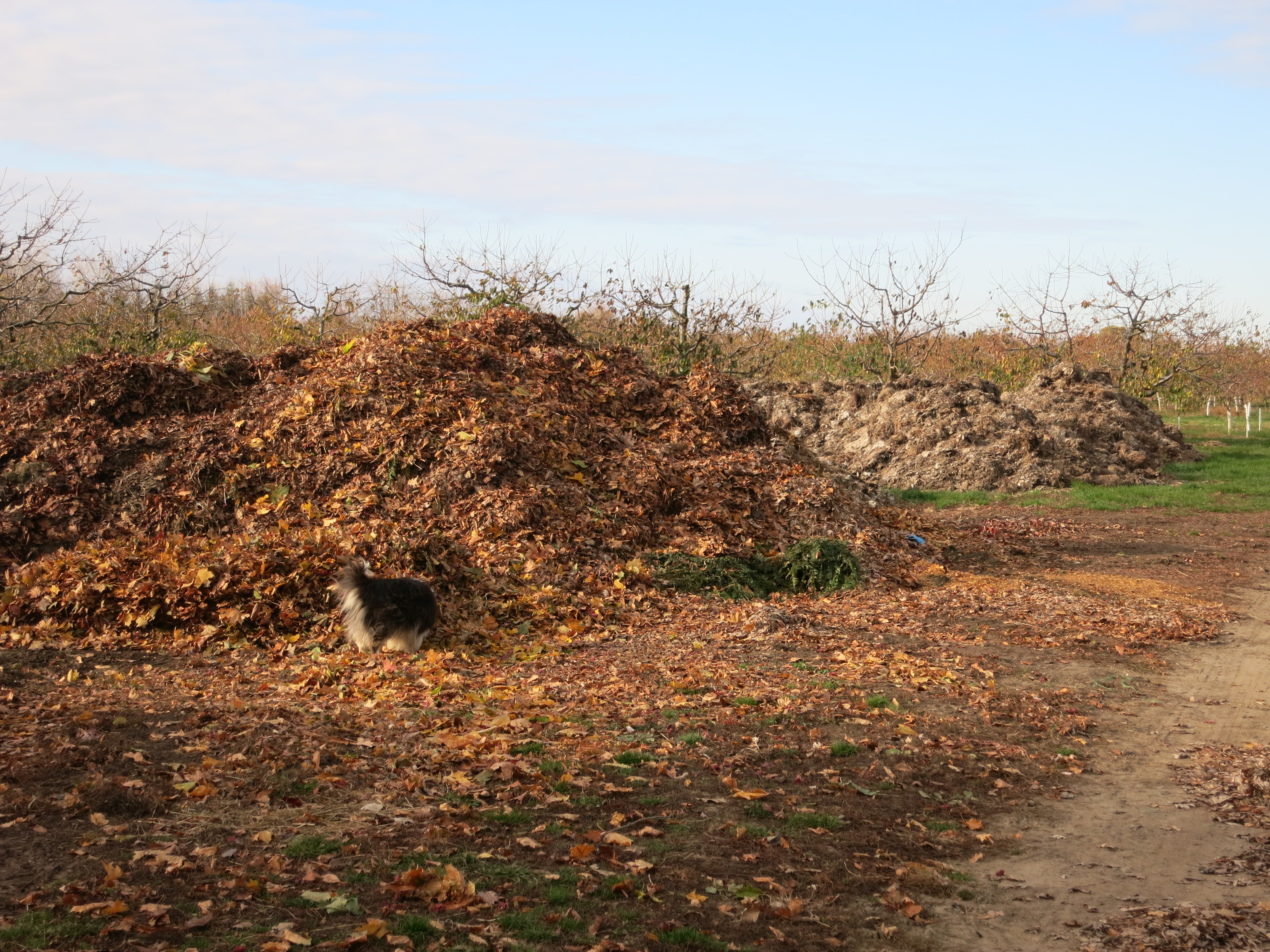 The first job awaiting me – spreading a huge pile of leaves, grass clippings & manure.