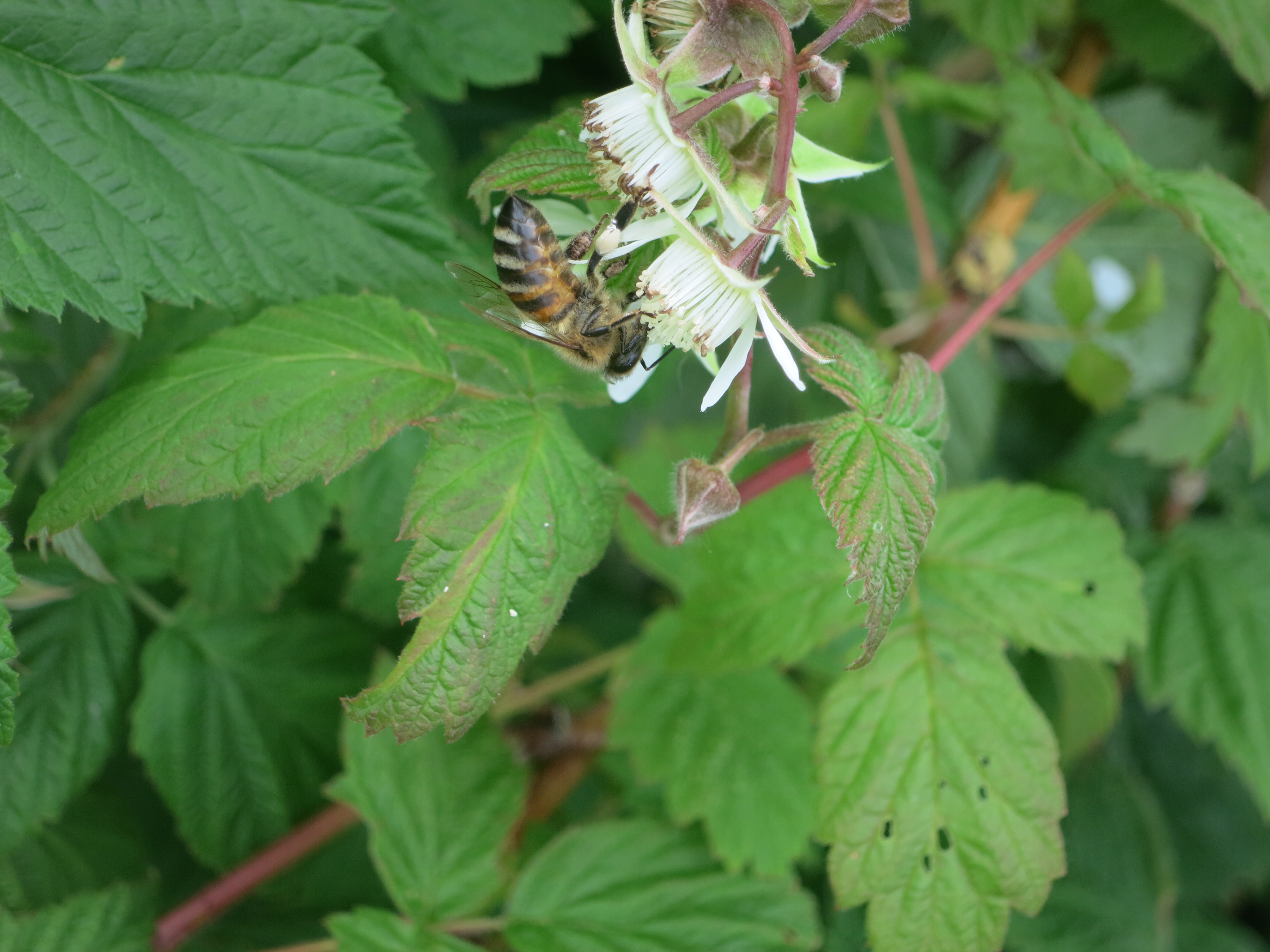The raspberries are looking very good – the bees were busy in the flowers today after the rain!