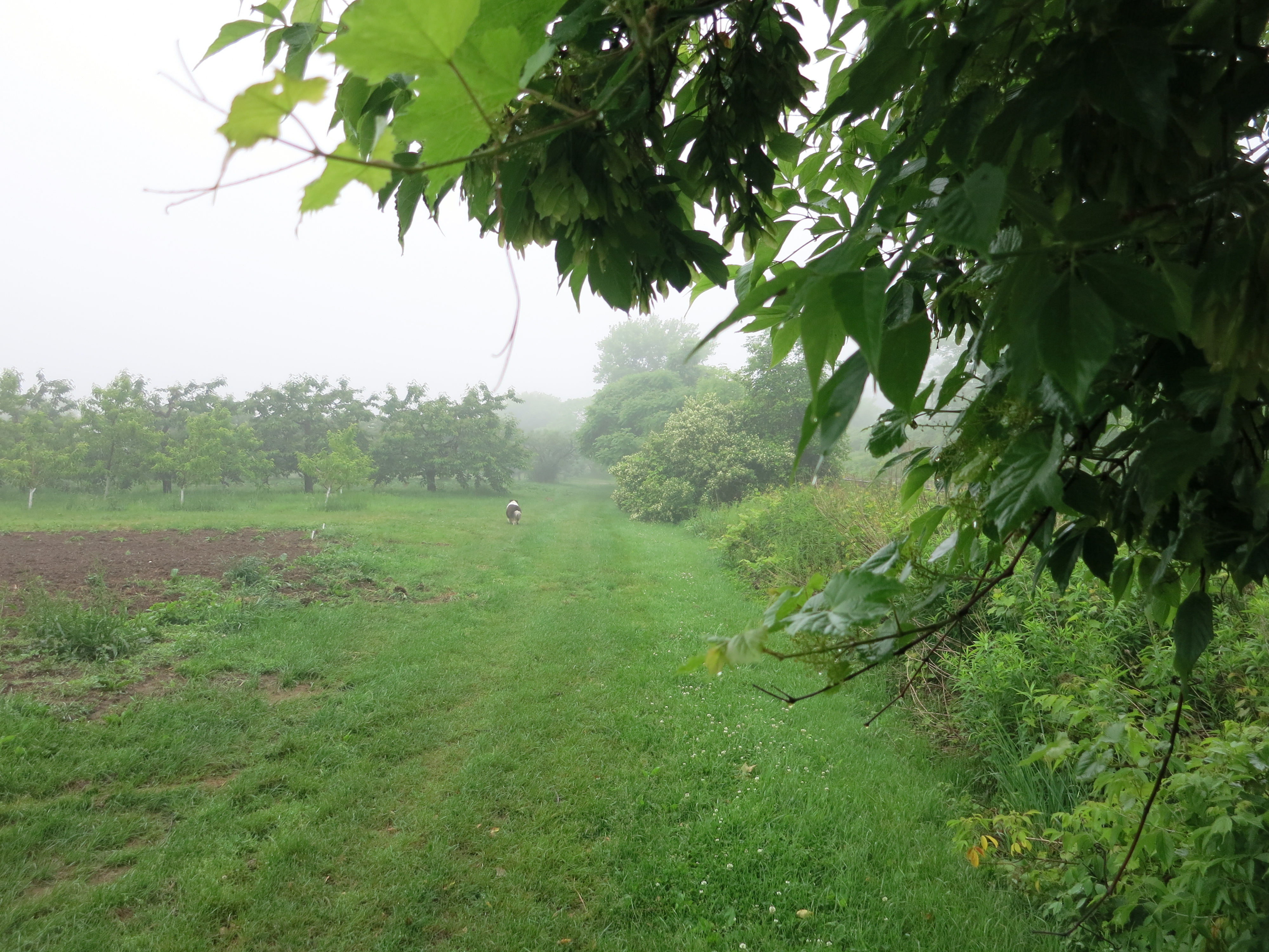 With ample moisture in the ground from all the rains earlier this month, and now the sunshine & warmer temperatures, everything is growing rapidly. The fruit trees, berry canes, vegetables, grass, and of course the weeds – all are lush & bright & green.