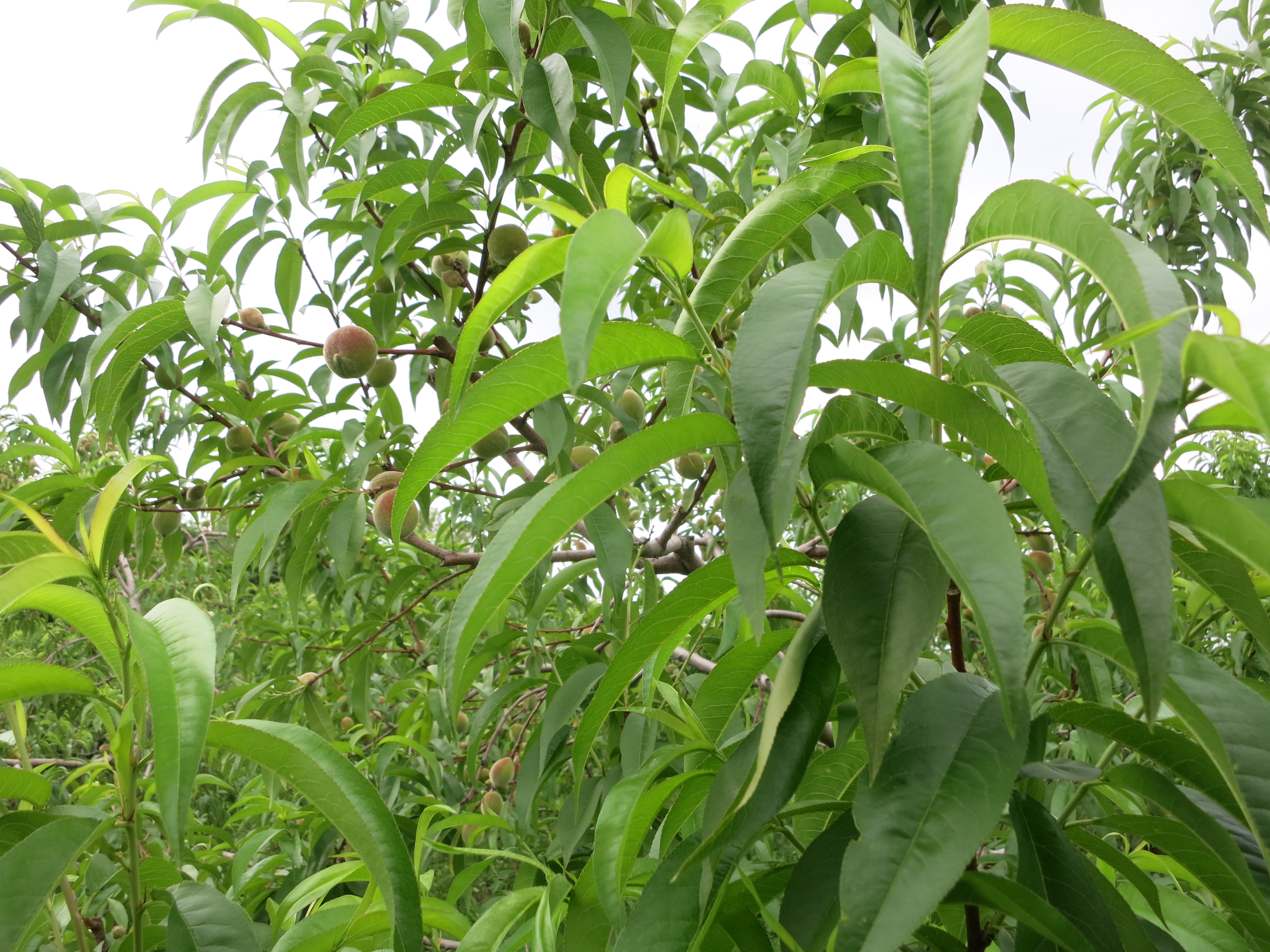 New peach leaves & branches are a bright, vibrant green, becoming a darker green as they mature.