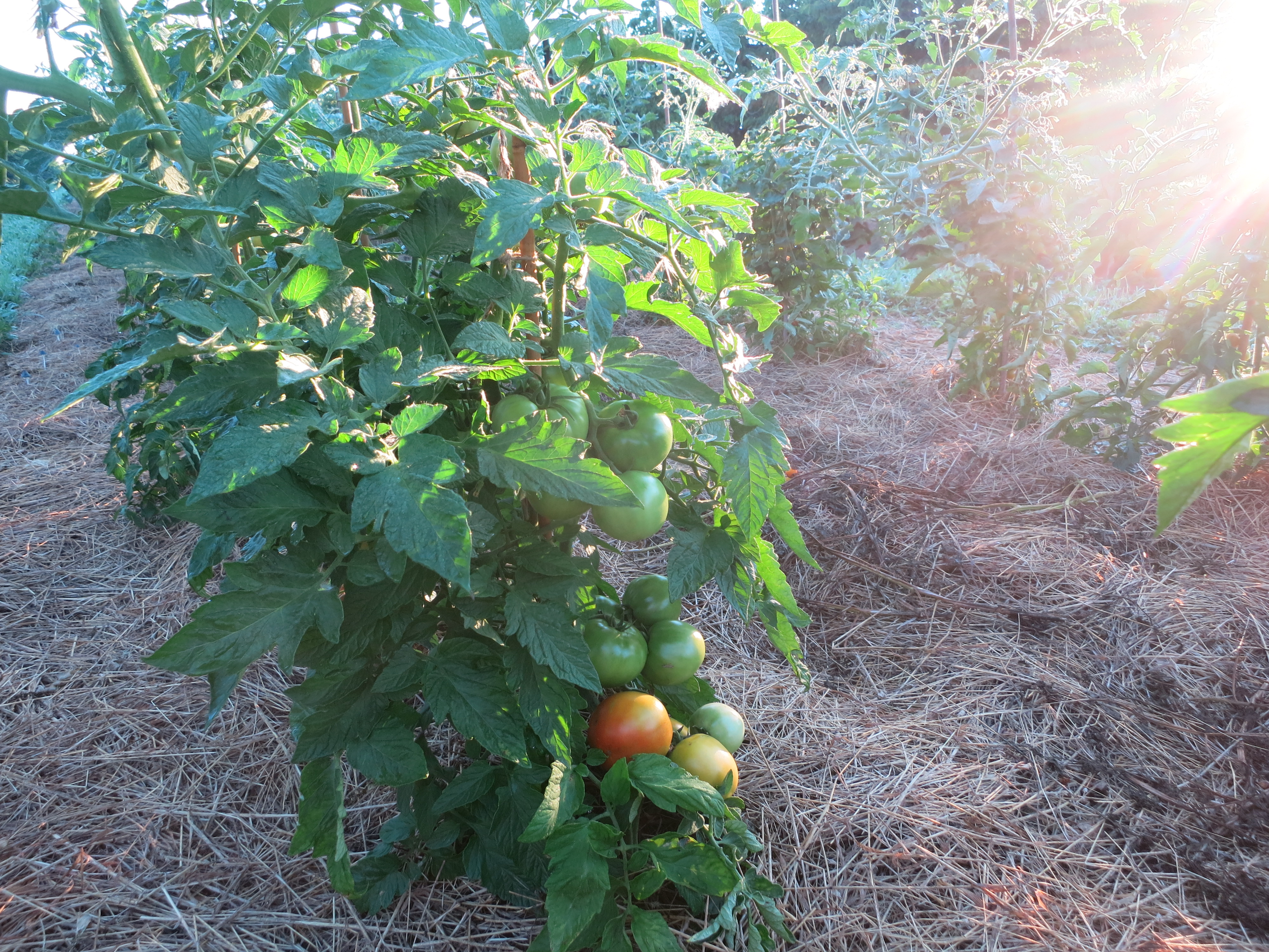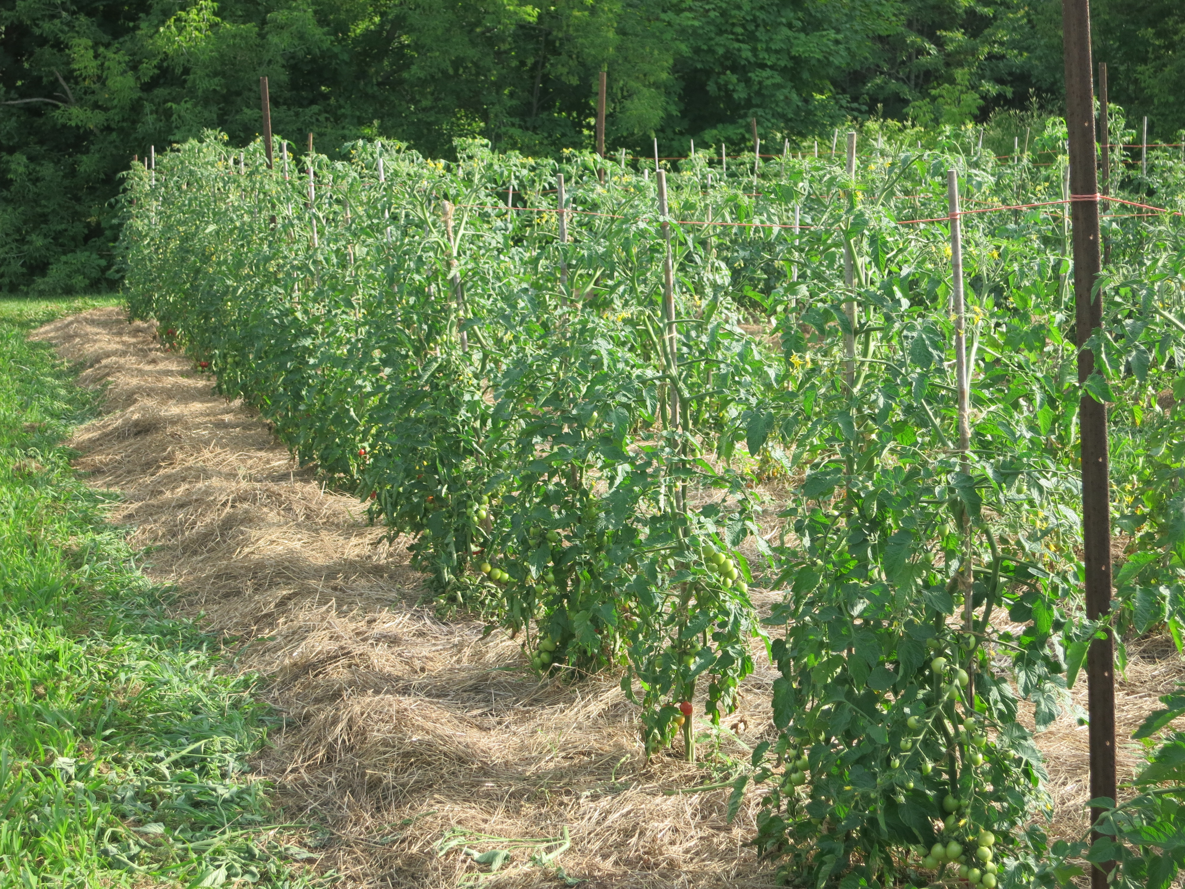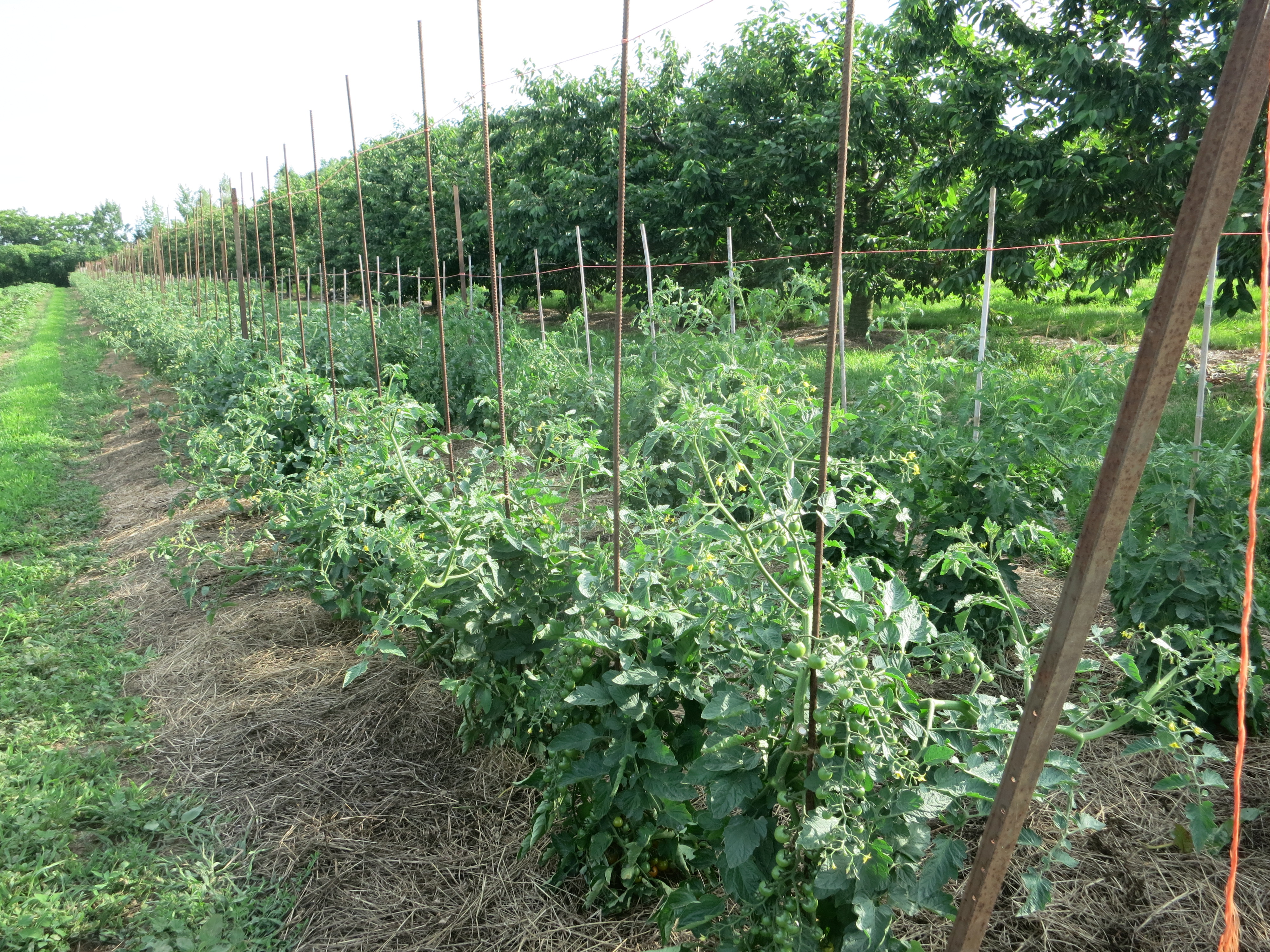 Right now we are scrambling to keep up with suckering (pruning) & tying the tomatoes