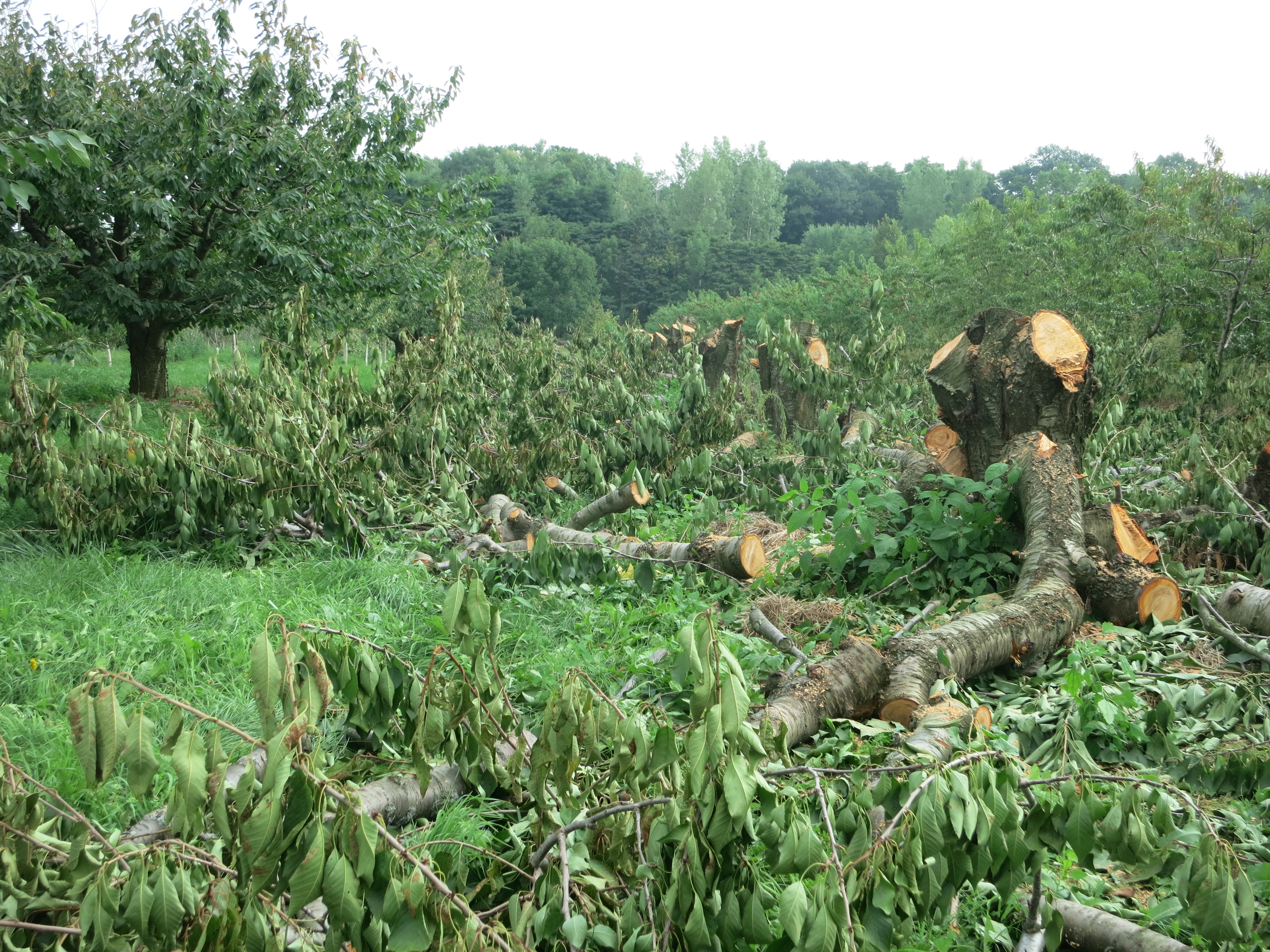 It’s sad because they do have a lot of history. Most were planted by my father years ago. Many of them are older than me. I know each tree because I’m the one who has pruned them each spring for more than 30 years. I picked the cherries on these trees when I was a boy. I know which trees ripen their cherries first, which ones always have a heavy crop & where the sweetest fruit can be found. I know where to duck my head when driving through the orchard to avoid the low branches – without even looking ..