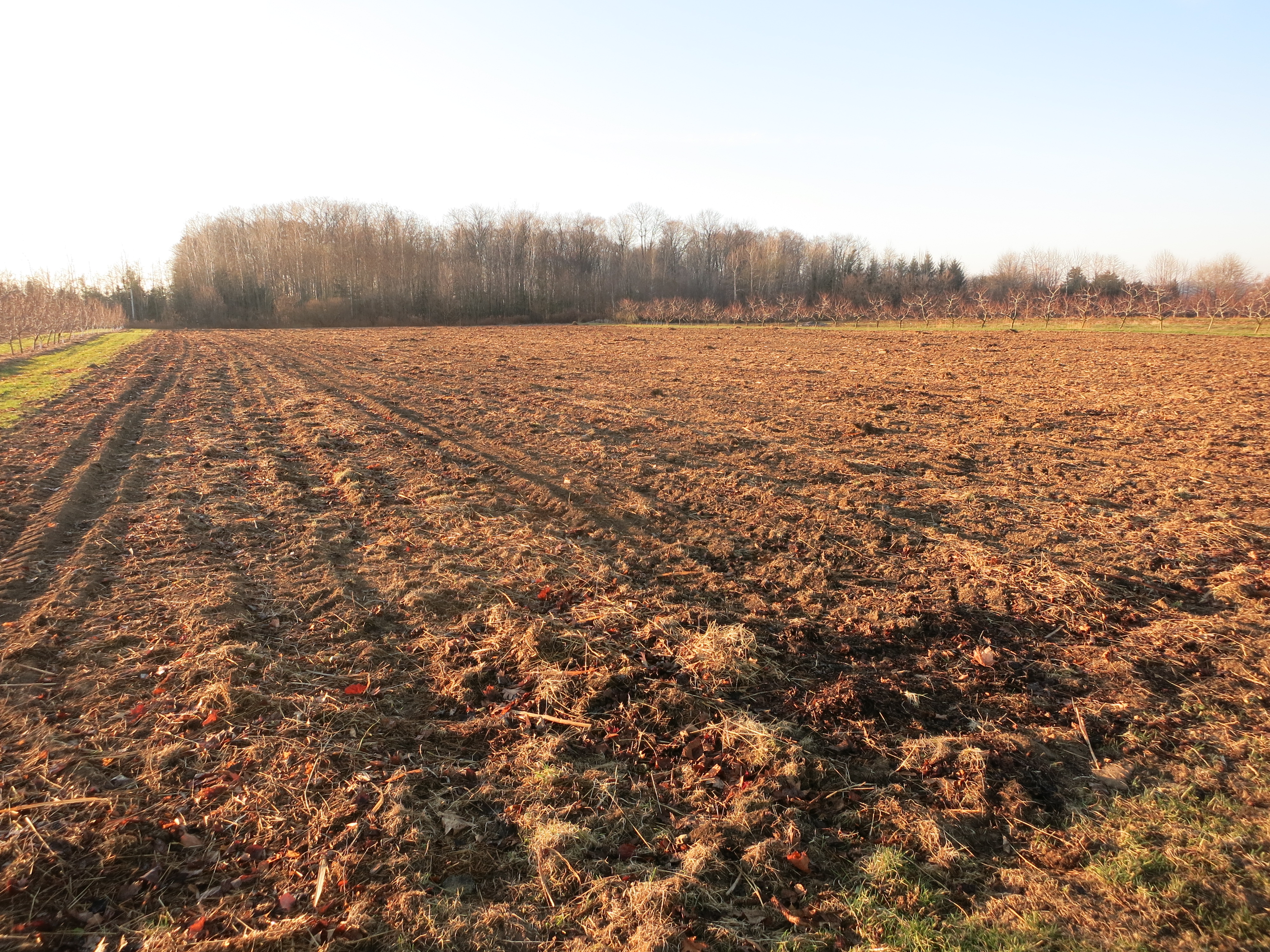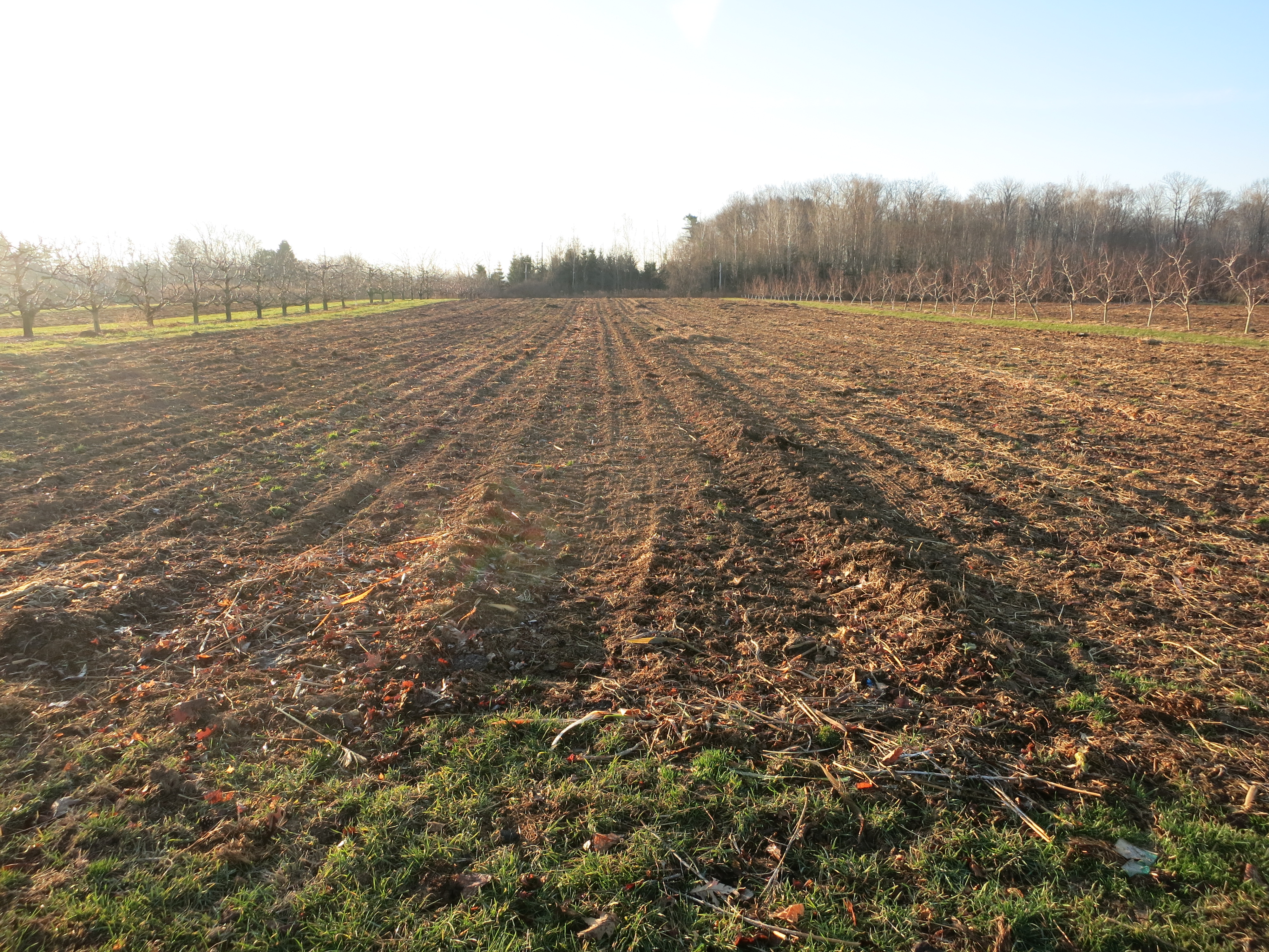 On the other part of the farm we only removed the trees – no cultivation or plowing. We won’t need this ground for early planting so we can prepare it in the spring. This allowed us to leave the grass & mulch that were already there from when it was orchard and will prevent soil erosion over the winter.