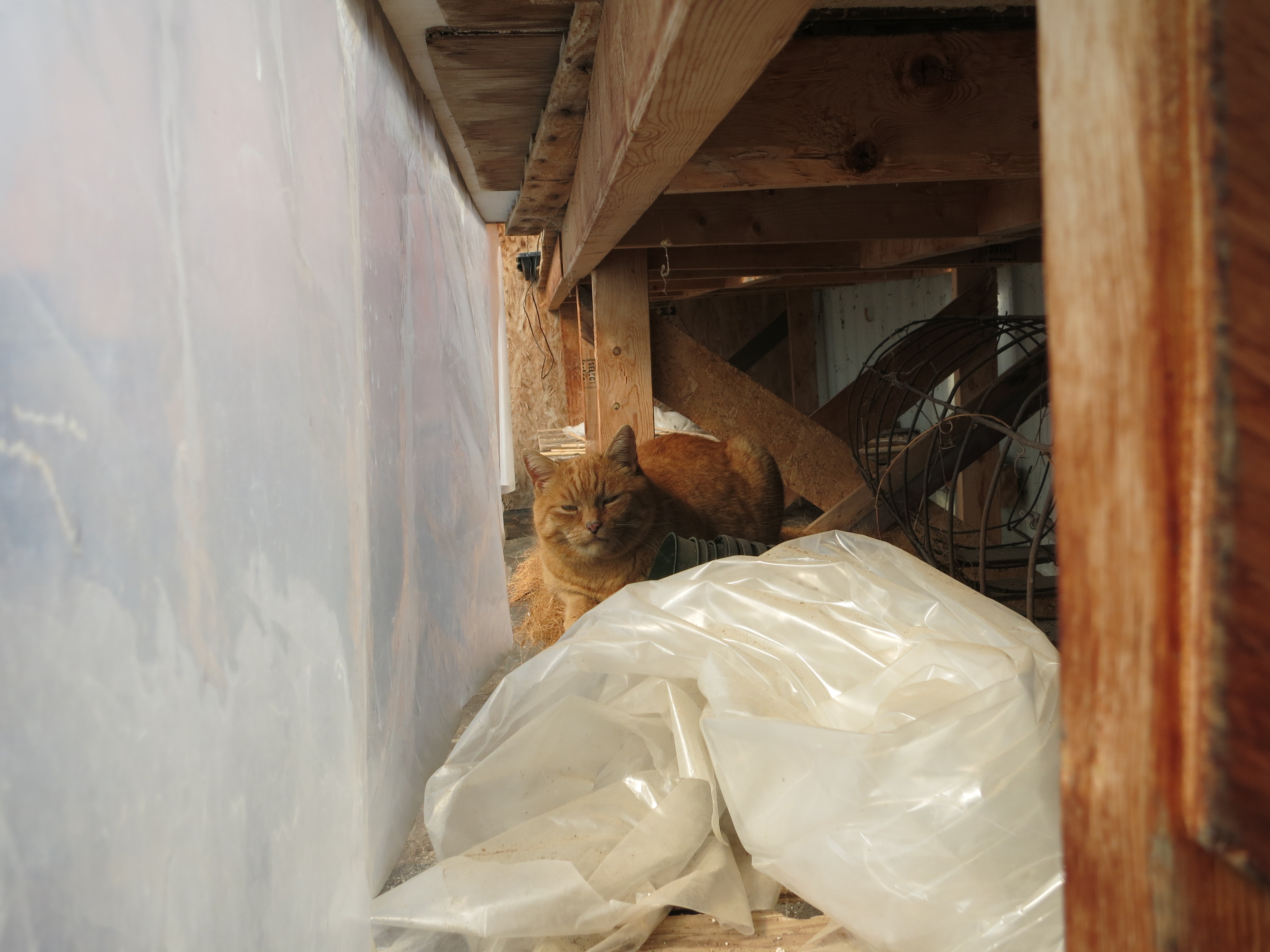 Now that the greenhouse is being used to grow plants, the big losers are the cats. All winter they enjoyed sunning & sleeping in the warmth.