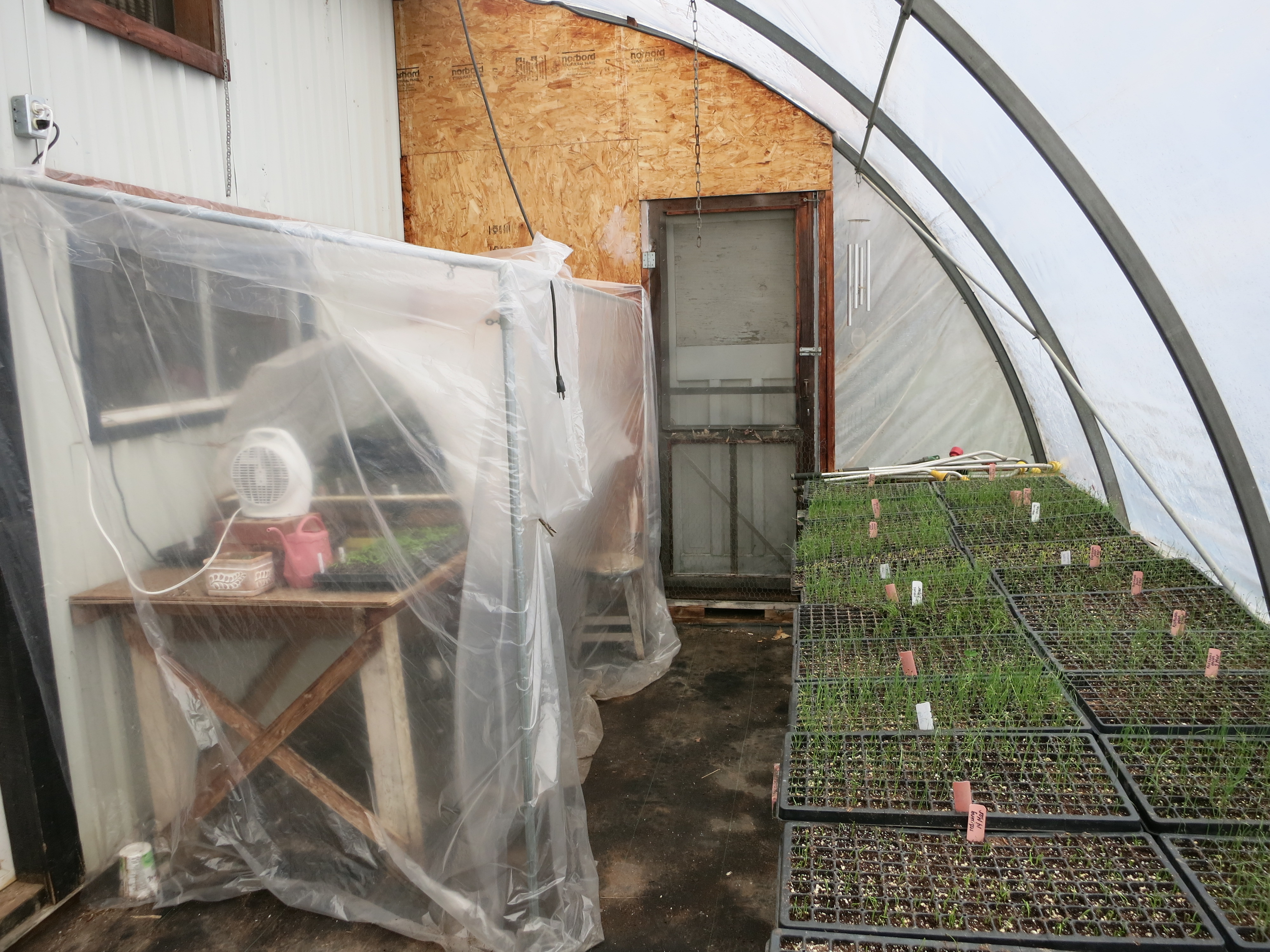 This is where most of the work is happening on our farm now – in our smaller greenhouse.