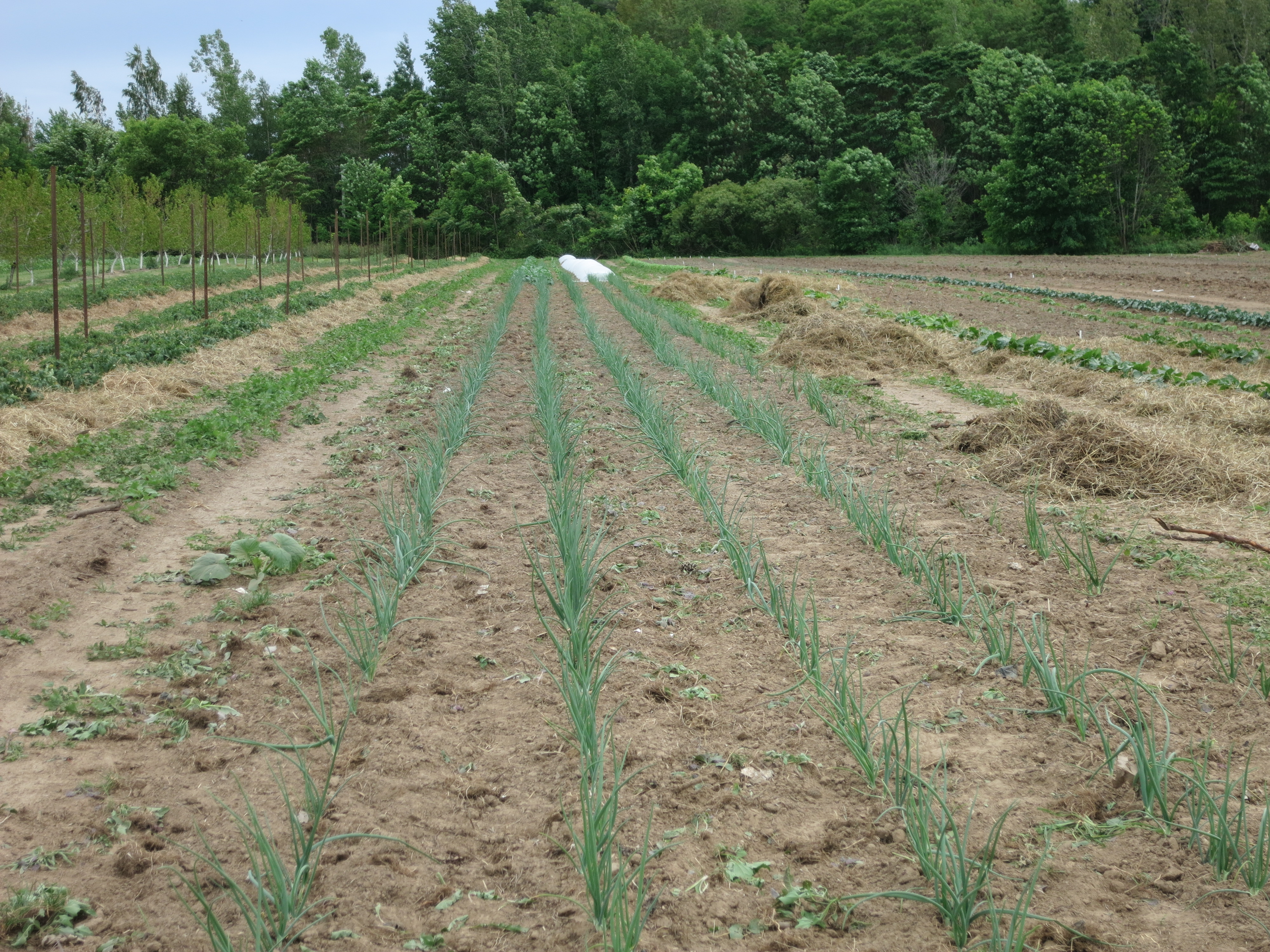 Answer – The crops continue to grow despite the lack of precipitation. We have not had a good rainfall since … I don’t remember. But this is when we see the benefits of our soil building efforts through the years. All the manure, compost & mulch that we regularly add has built up the organic matter and improved the soil’s ability to hold moisture. While it is extremely dry on the surface, there is still some ( not enough) below. Seeds that are sown now have to be well watered in order to germinate. Then the roots head down, down searching for moisture. Most continue to grow – slowly. Transplants that we set out now also need to be watered in, usually several times. Even then they struggle and are not thriving as we would like to see. But it could be much worse …