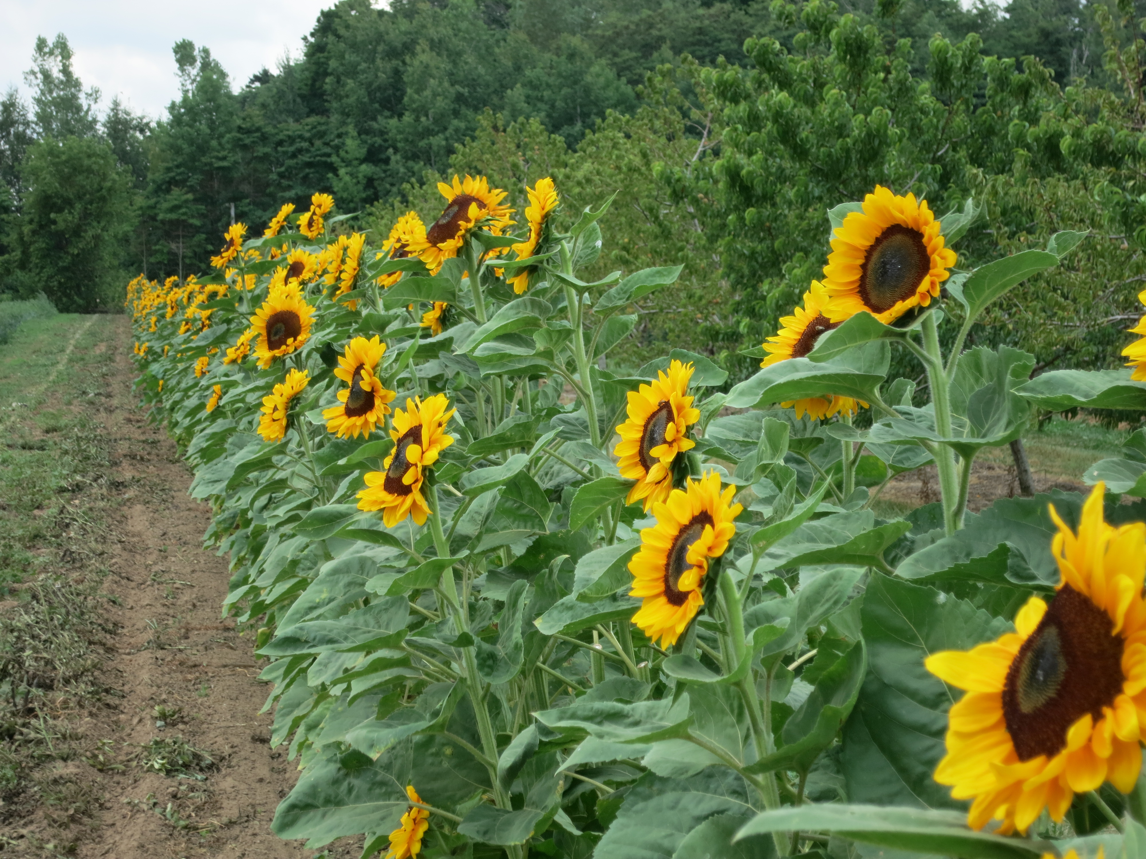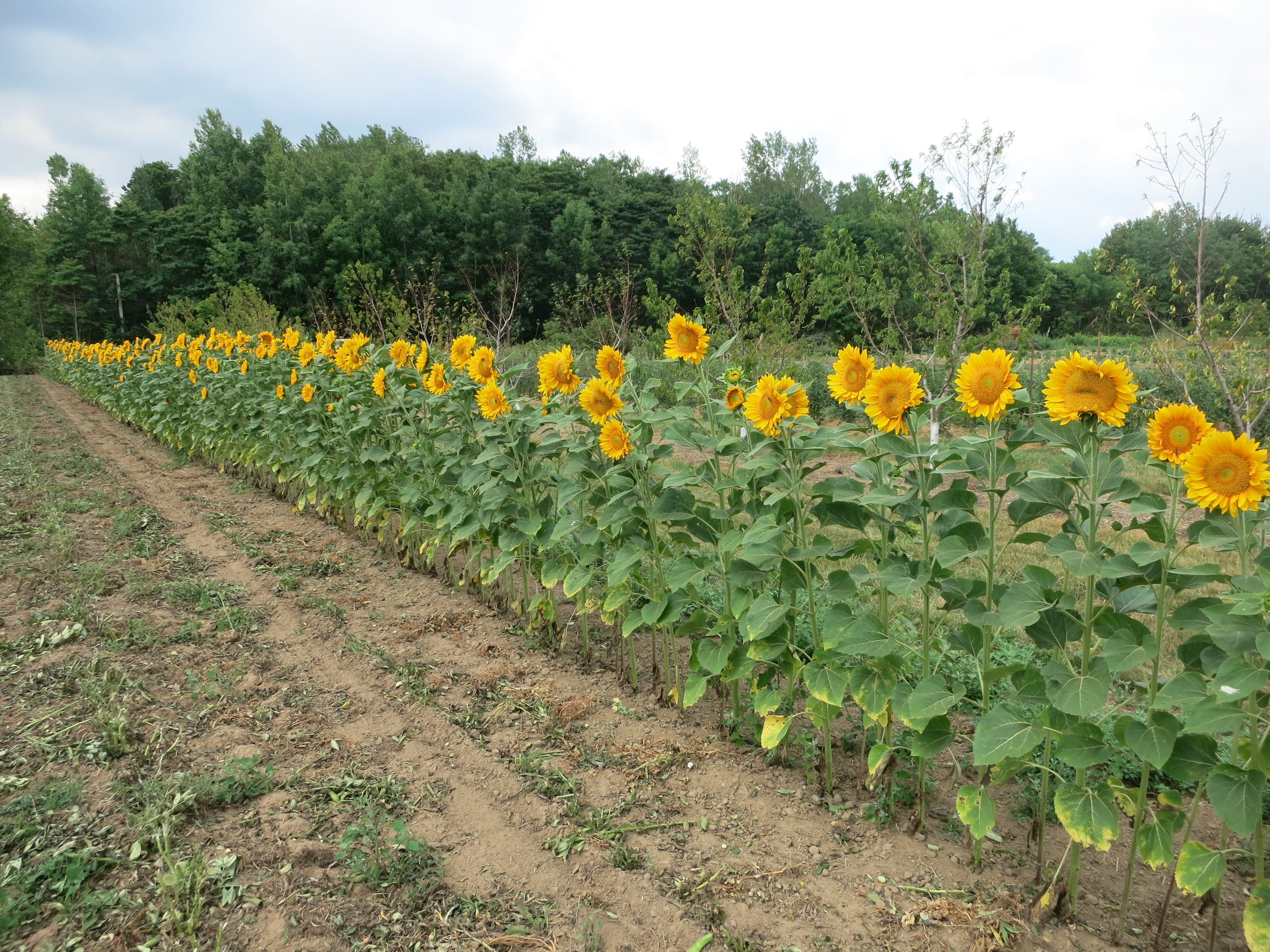 The plan was to plant a lot of sunflowers this season. We ordered a whole pile of seeds in the winter – 5 or 6 kinds, different colours & sizes. We would seed a row every week to ensure a continuous supply of blooms for much of the summer. Even if sales were poor, the farm would look great!
