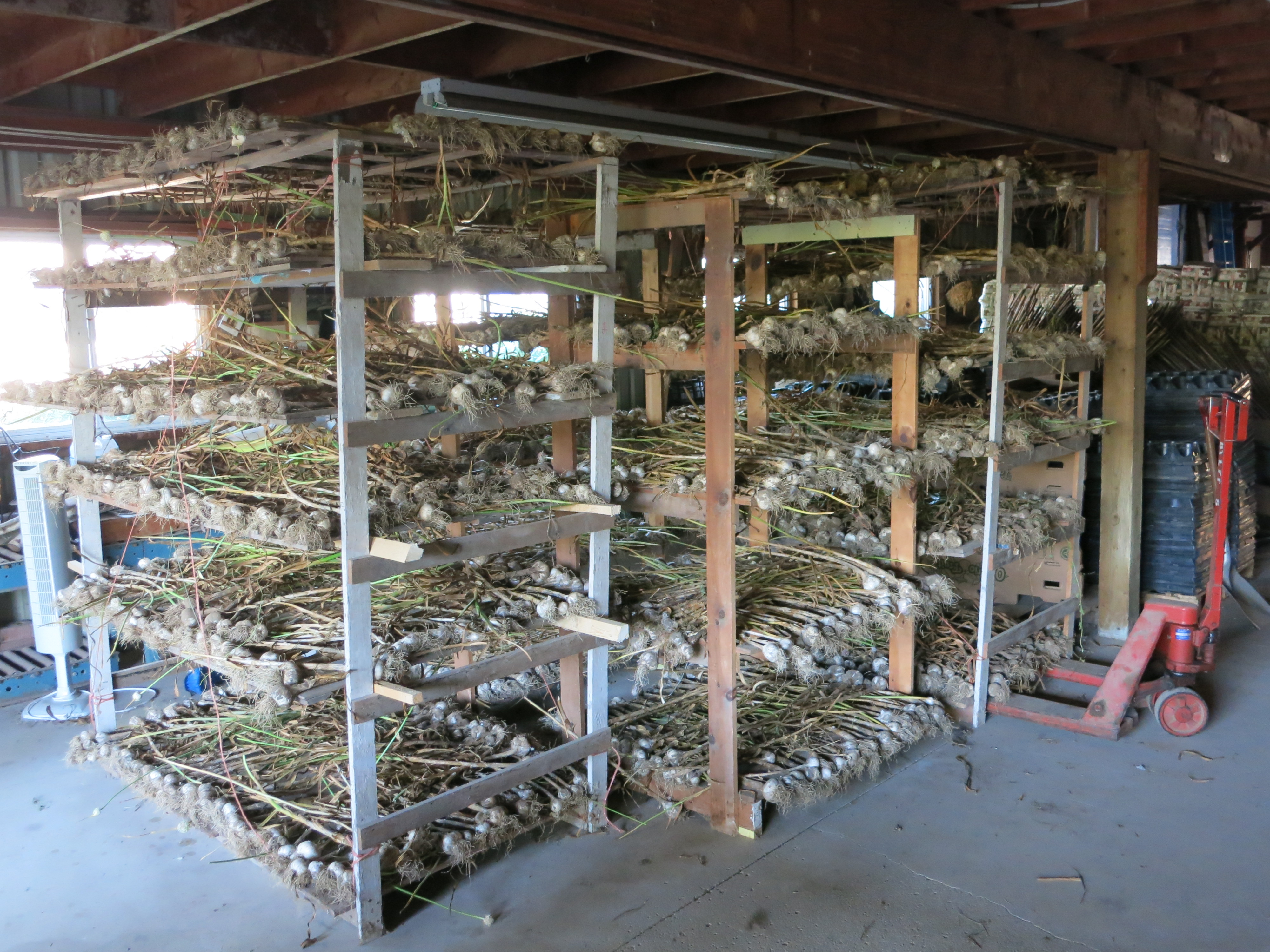- Our garlic has been harvested & we have it drying on racks in the barn. The sight & smell of it had many CSA members drooling when they picked up their boxes last week. It’s not dry yet – but why wait!? Your first, fresh garlic bulb will be in your share this week – with many to follow. You will probably want to use it & enjoy it immediately. Because it is not dry it should be kept someplace with good air circulation, and out of the sun. Do not put in plastic or in the fridge. Once the bulb has been started, try to finish using it within a few days.
