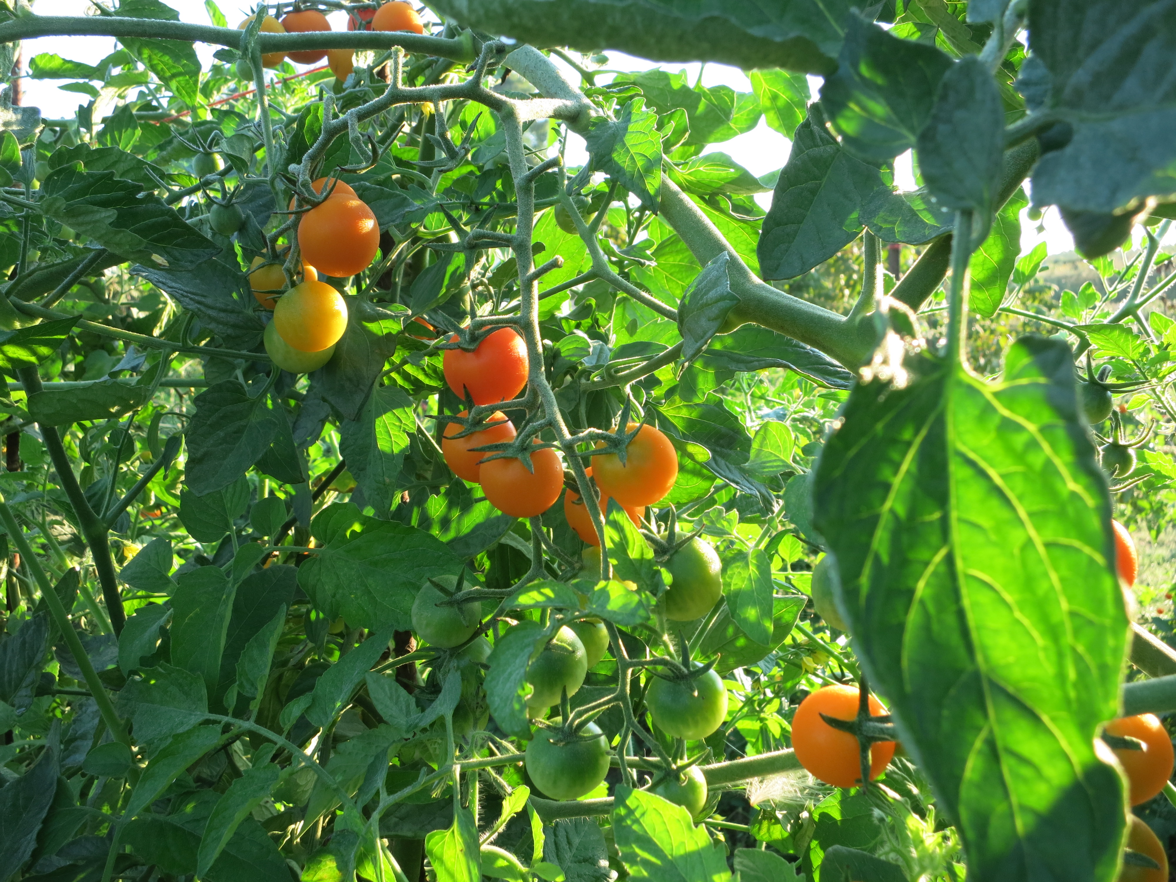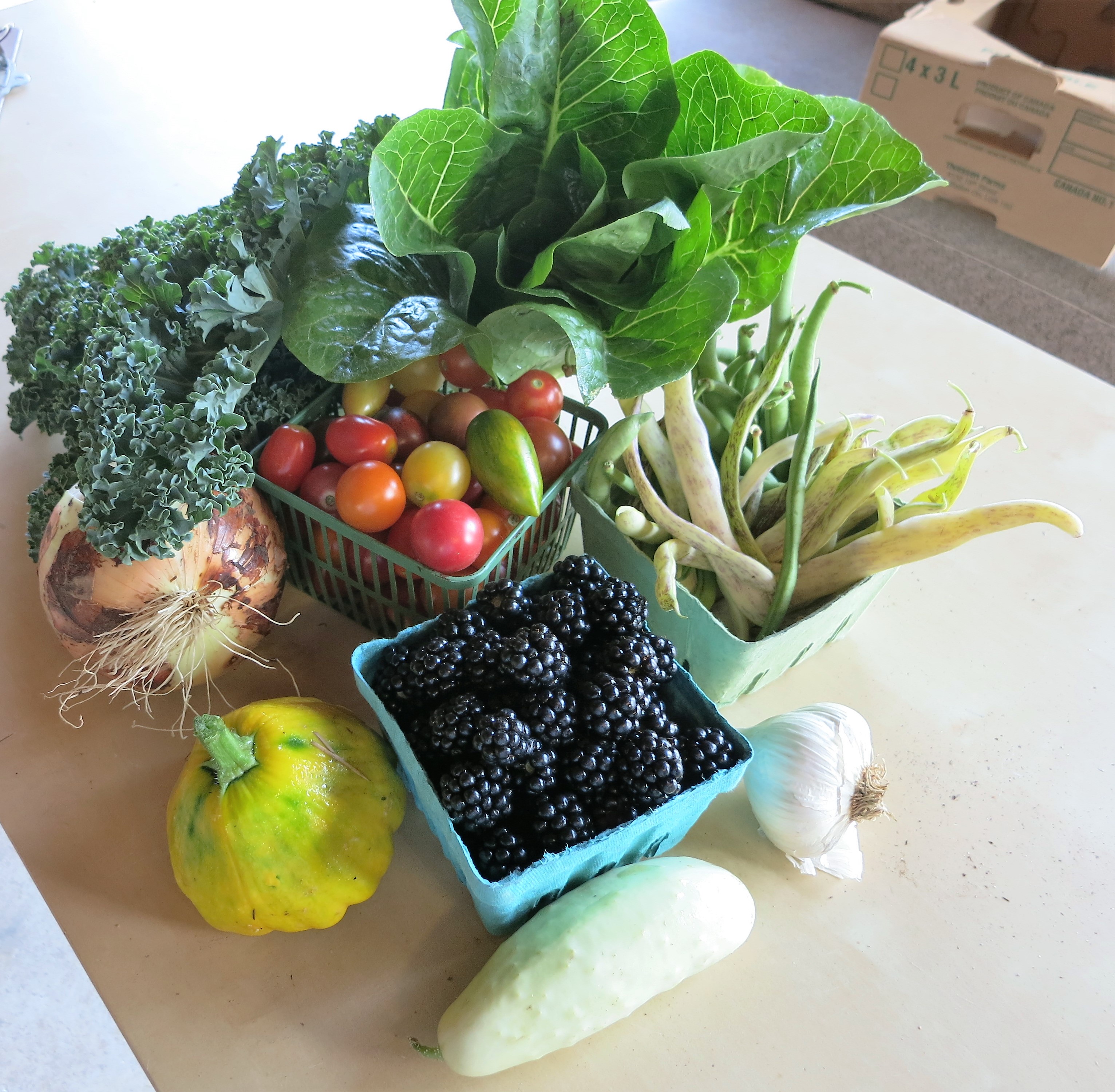 Shallots, garlic, tomatoes, kale, Bartlett pears.