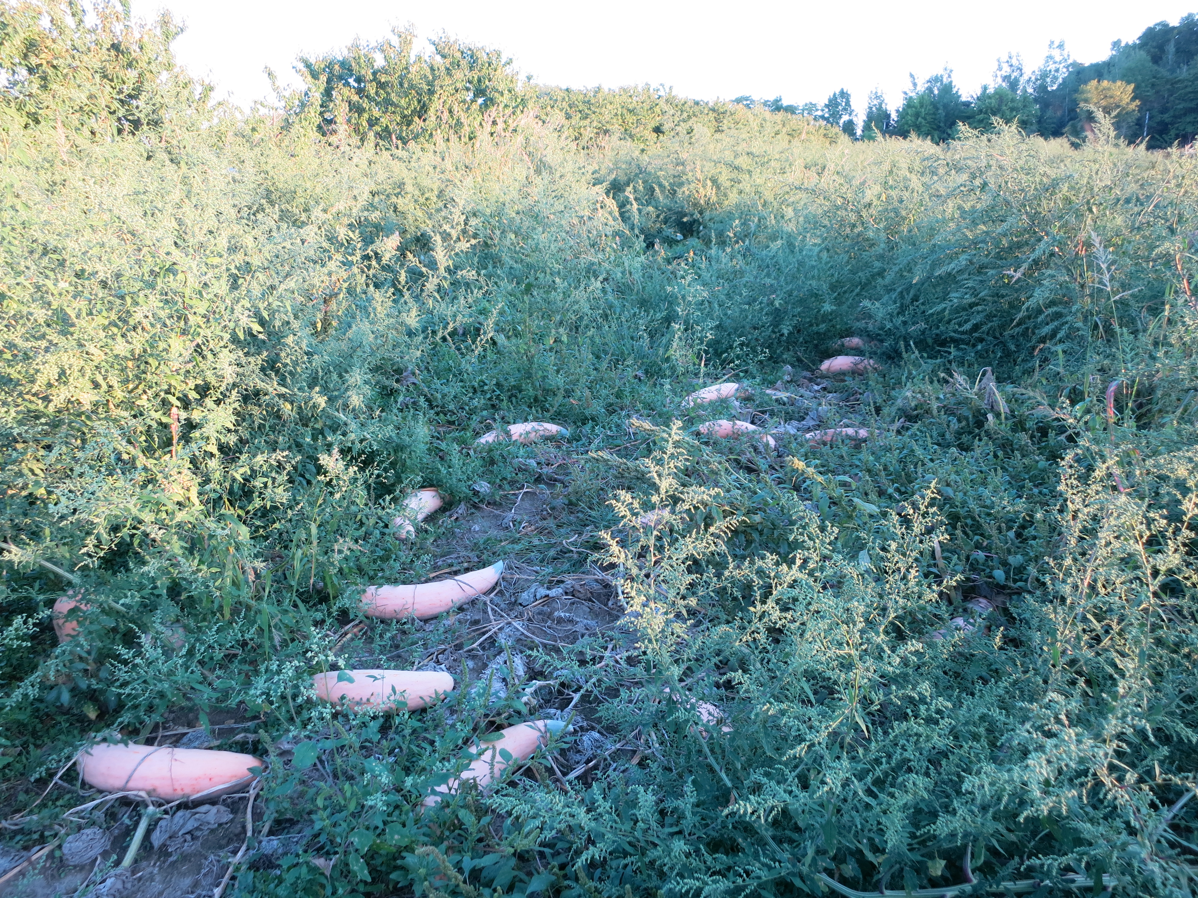 Finally last week we found the courage to venture into the thicket. Surprise surprise! There is some really nice squash – not a large crop but probably ample. While we started with 29 varieties there are considerably fewer remaining, but still a good selection.