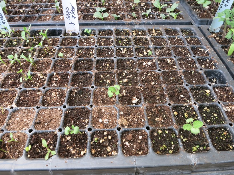 Most things are growing well but there are always some seeds that hesitate to grow. Usually the problem is old seeds …