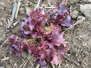 We are trying more intercropping this year. Our head lettuce is planted between our cauliflower plants. The idea is that the lettuce will mature, be harvested & gone by the time the cauliflower has grown big enough to need all the space.