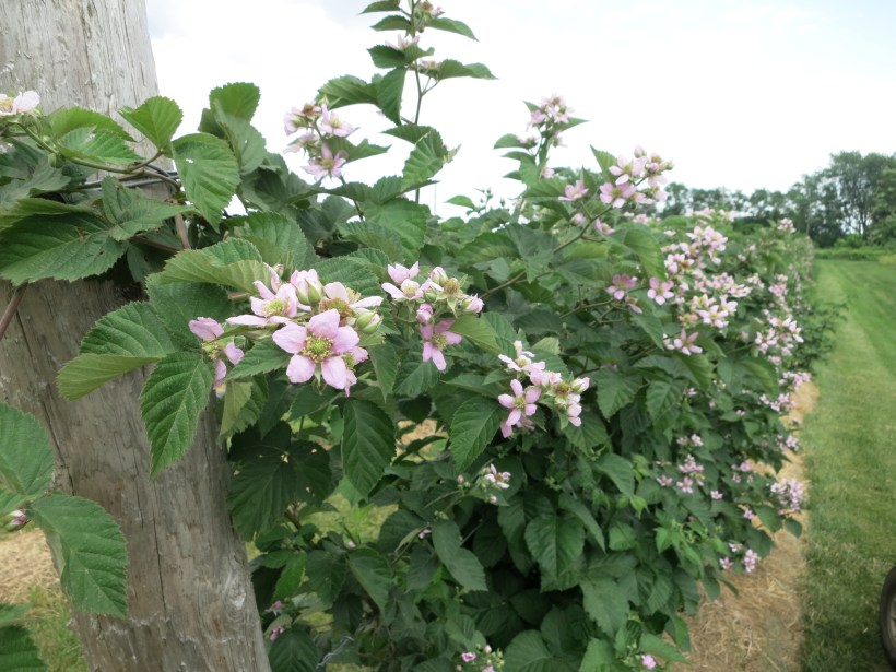 Our blackberries came through the winter healthy & well. The canes are in bloom now, and full of bees. We anticipate a good crop of these dark, juicy, delicious berries – starting in early August.