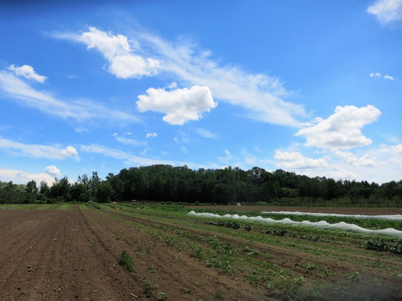 This afternoon, Amy was in the tomato patch, suckering & tying. I was transplanting lettuce seedlings into the field. But both of us were eyeing the clouds, marvelling at the lightning and listening to the thunder.