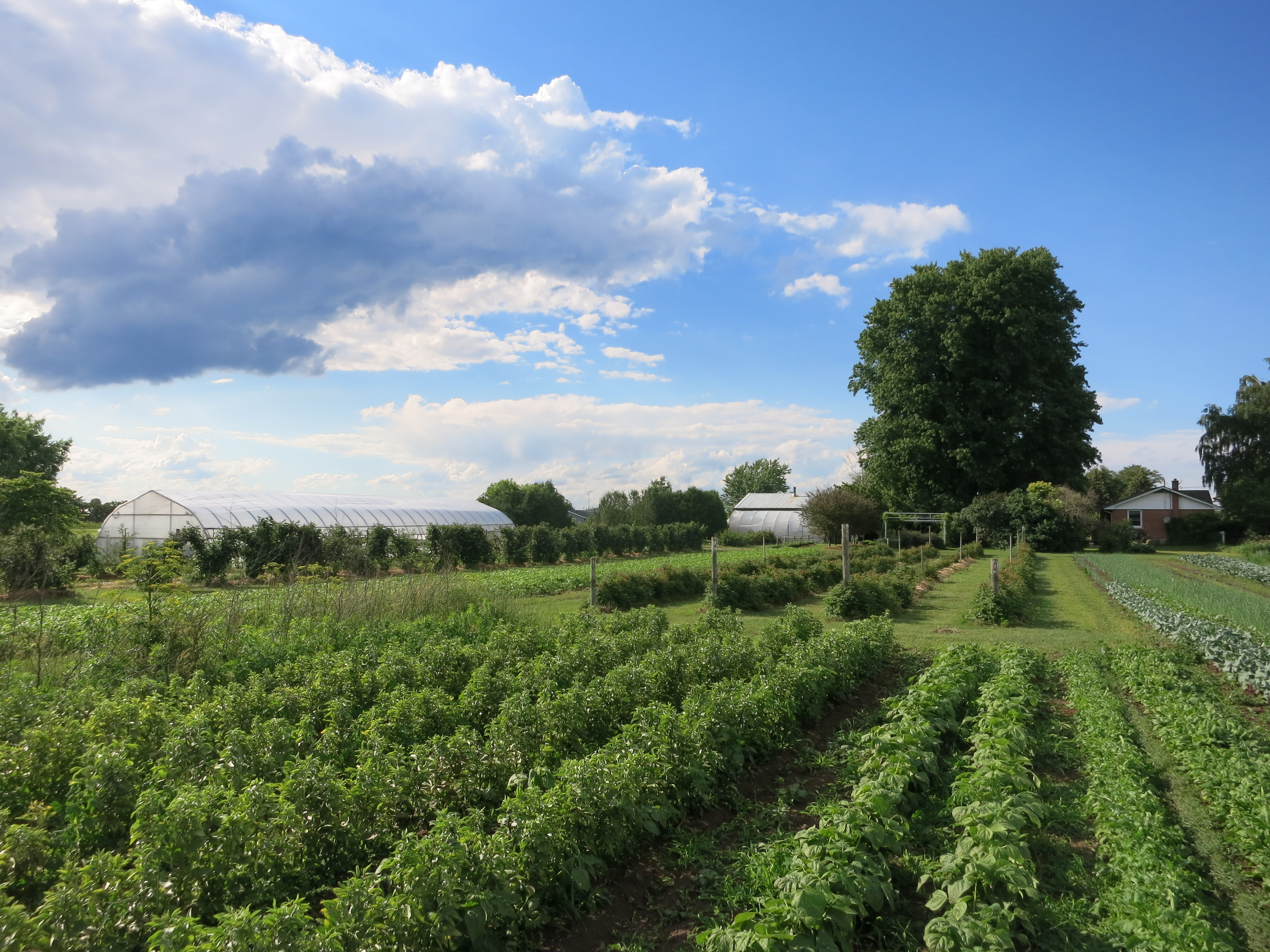 Today’s hail appears to have been widespread in our area & caused varying degrees of damage. Some farms in our neighbourhood are reported to be wiped out. We were fortunate and seem to have experienced less damage – mainly rips & holes in leaves. While this will make the vegetable plants more susceptible to disease we think most will be okay. But we will find out the full extent of the damage when we harvest for CSA tomorrow.