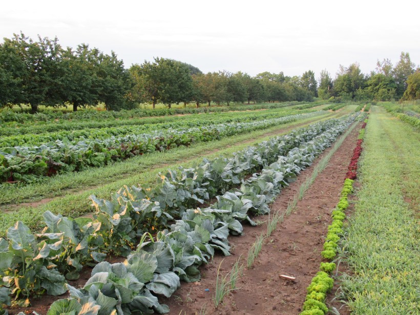 … the vegetables are growing – but not as well as the weeds (find the onions to the right in the picture!),