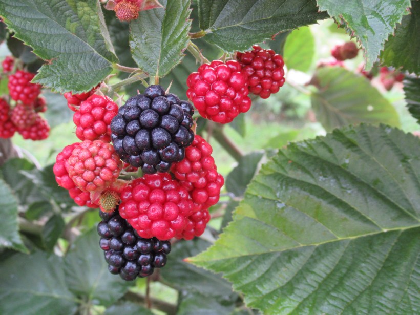 Blackberries, tomatoes, beans, beets, garlic, onions & zucchini.