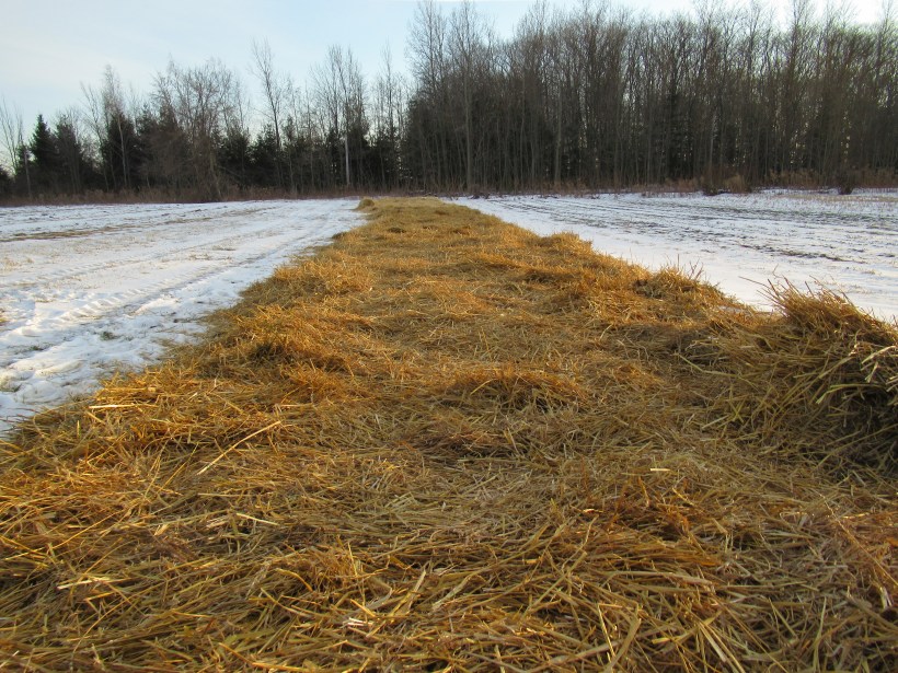 It felt good to spend a few hours outside on the farm this week. We finally got the garlic patches mulched with a thick blanket of straw. We prefer to do this when the ground is frozen but without much snow. The straw will then keep the soil frozen throughout the freeze/thaw cycles of our winter and prevent the garlic cloves from heaving & being pushed out of the ground. When spring finally comes and the garlic sprouts & grows, the straw will prevent the weeds from growing too, and competing with the garlic.