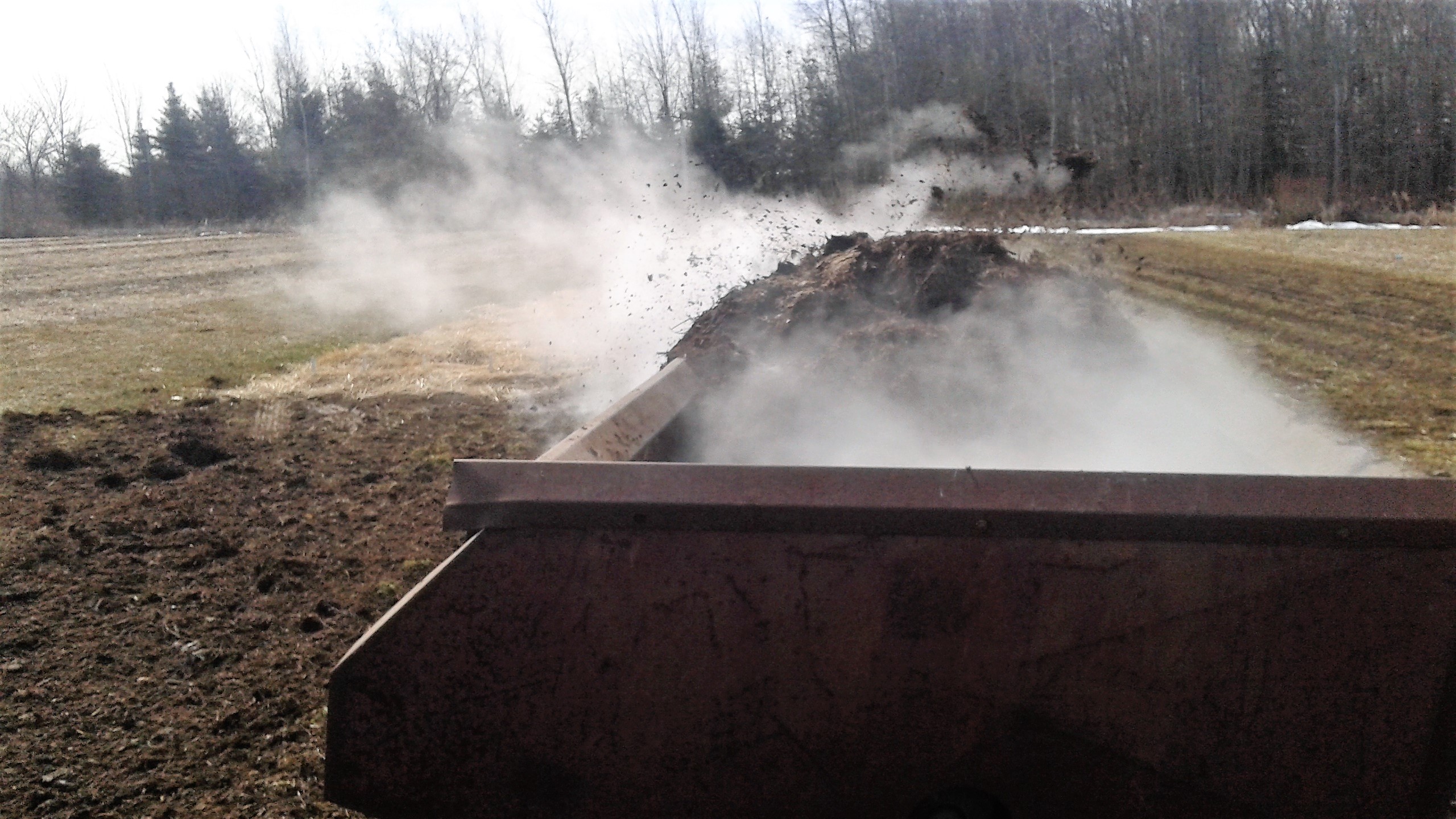 We had 5 dump truck loads of manure delivered in March. Usually it is delivered in the fall so we can spread it on the fields before winter and then leave it to decompose. Once the weather warms up in spring, we work it in and plant our vegetables in the re-energized soil. Manure is very beneficial, adding organic matter, feeding the microbial life in the soil and providing nutrients for the crops.