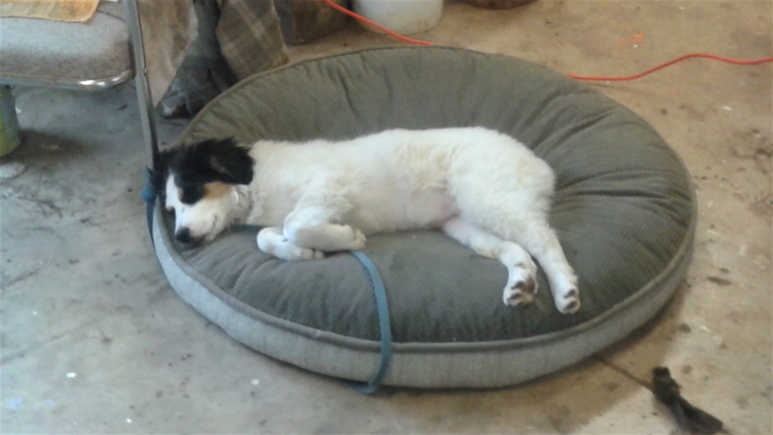 She plays outside until she’s exhausted and then sleeps in the barn while we work.