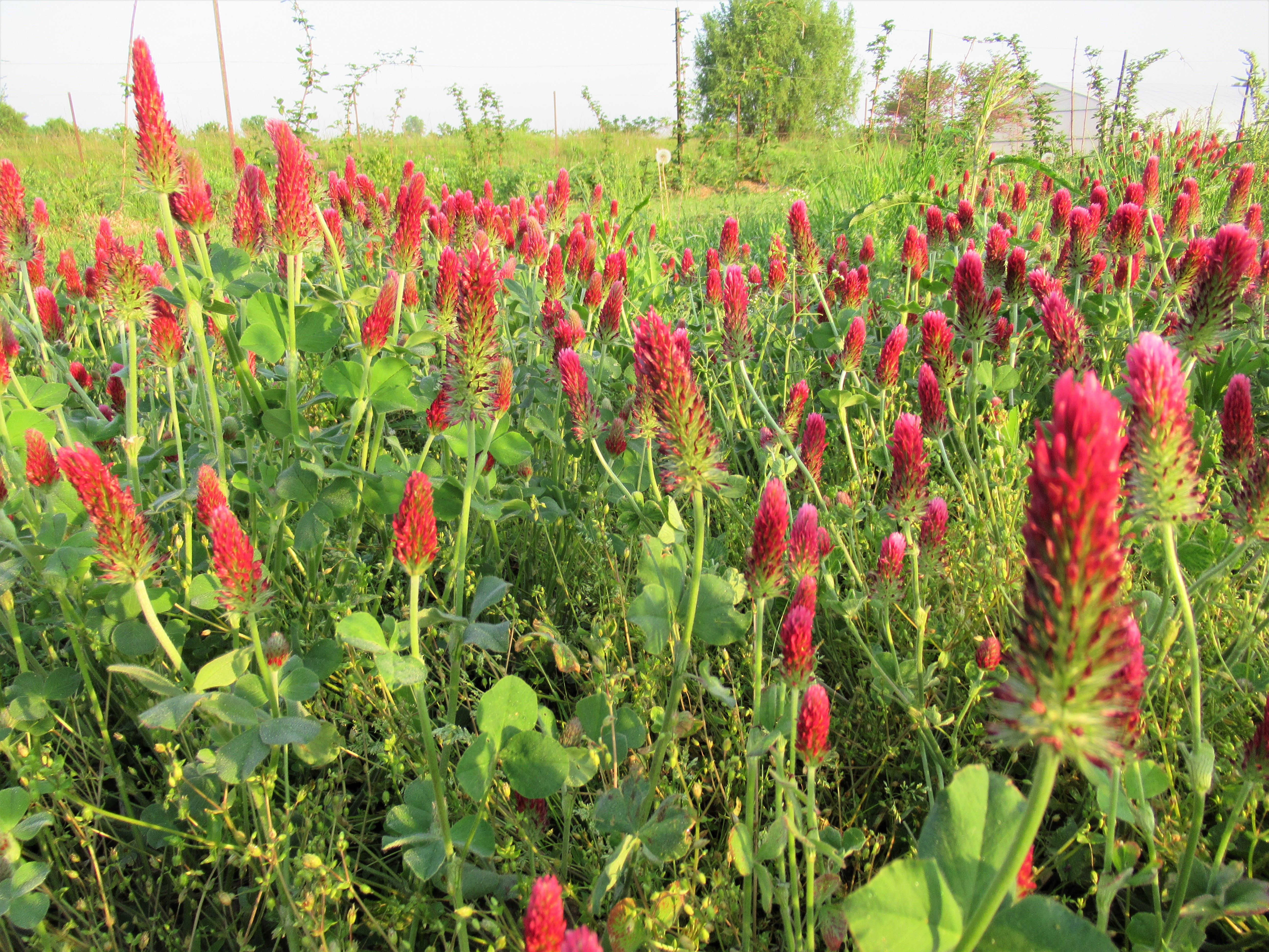 This is crimson clover which we had blooming last month. Clover provides a habitat for bees & other insects, fixes nitrogen in the soil (thus reducing the need for fertilizer), and it adds organic matter.