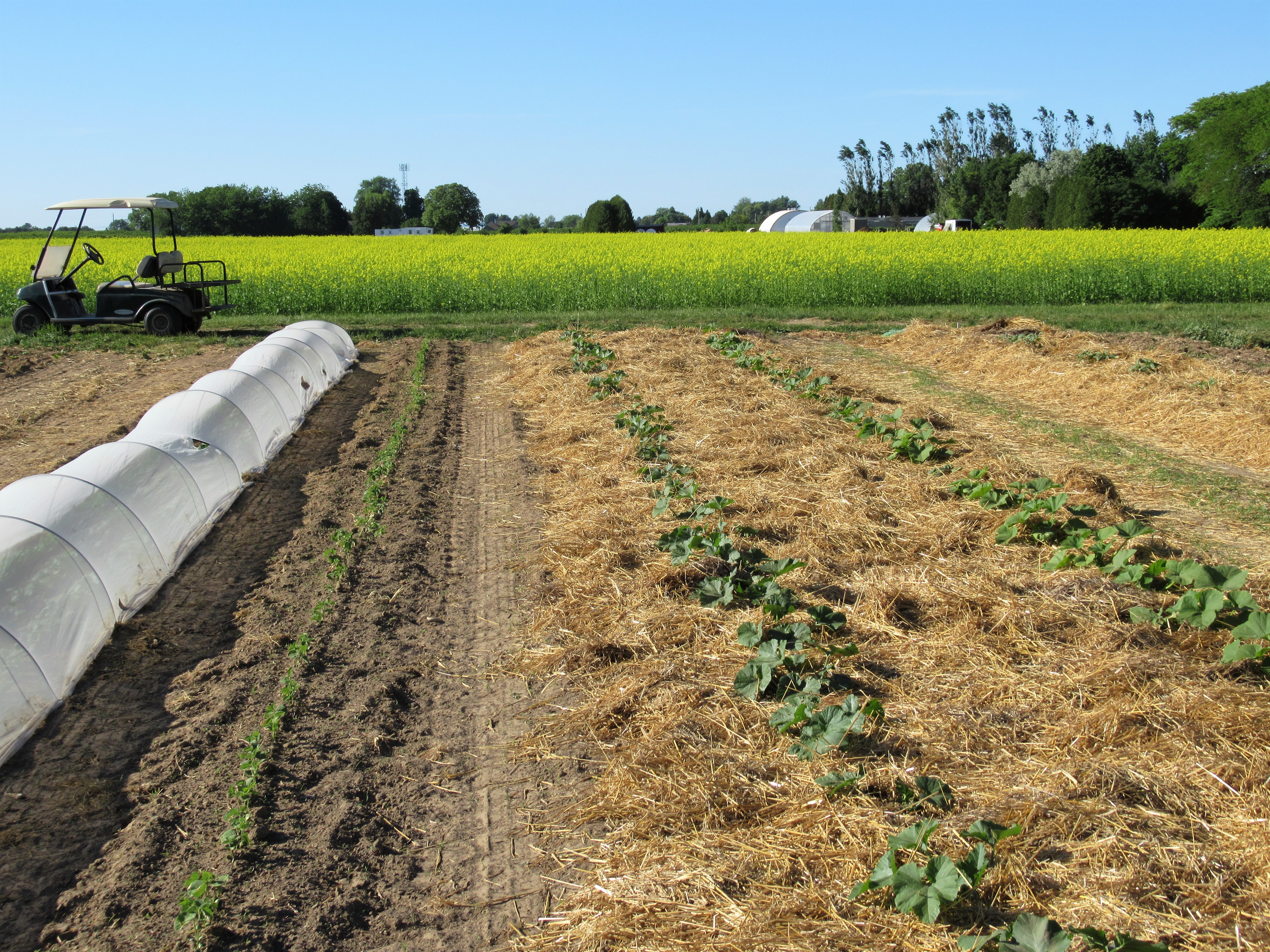 Areas of our farm that we will not be planting to vegetables until later this summer have been seeded to cover crops as well. The main reason to plant them now is to help keep the weeds from taking over.