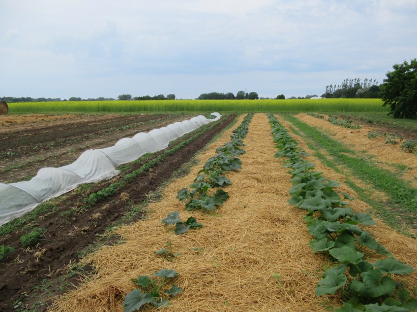 It’s been a rough season for our peppers right from the start. Cold weather back in March when we seeded them in the greenhouse hindered germination. Continuing cold temperatures meant poor growth & higher than usual mortality. Then last Monday we transplanted the survivors into the field. Again the withering winds blew & the poor peppers struggled yet again.