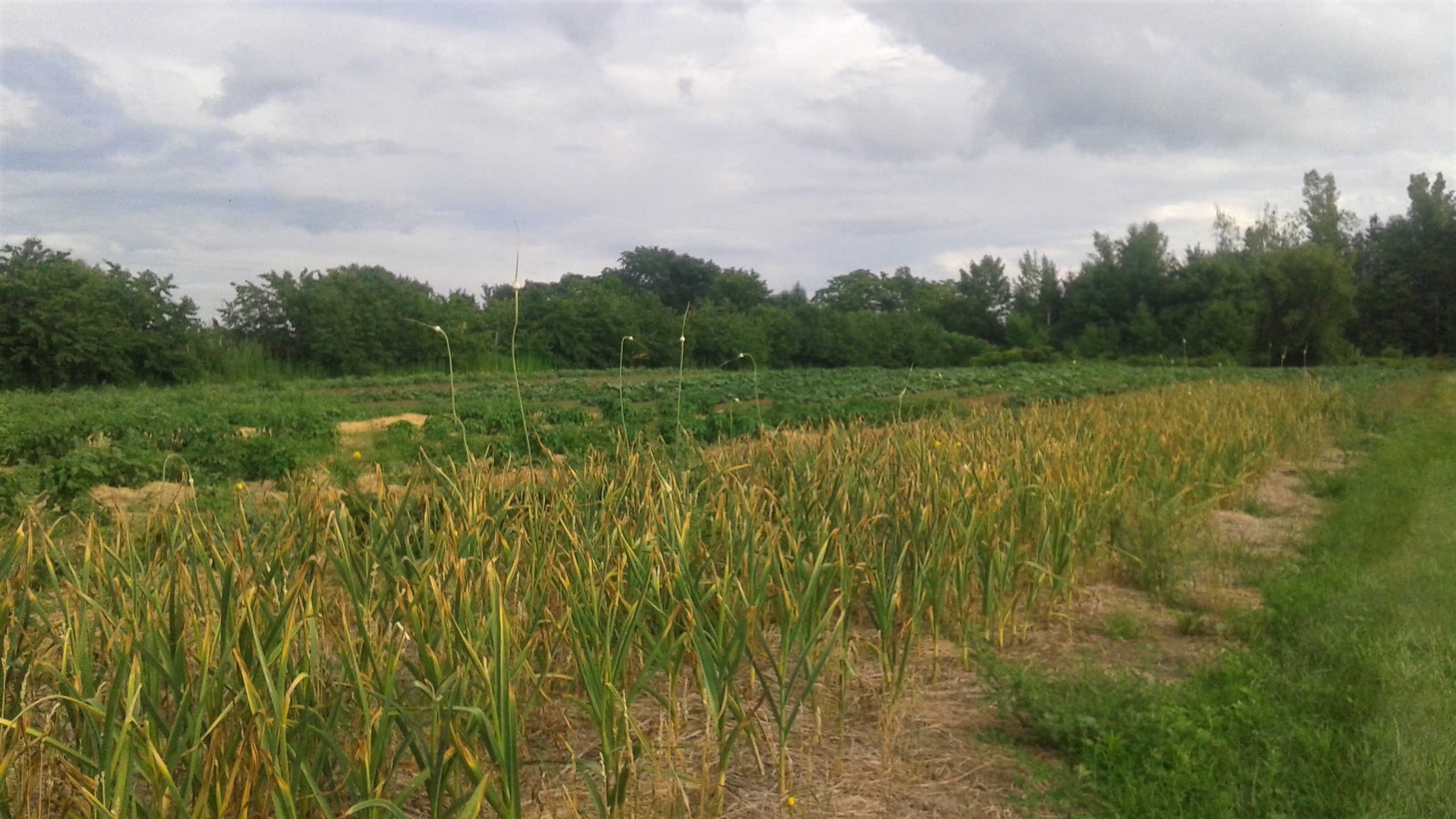 Elsewhere on the farm, the garlic harvest has begun. The garlic plants have started to brown up which means it’s time to pull them.
