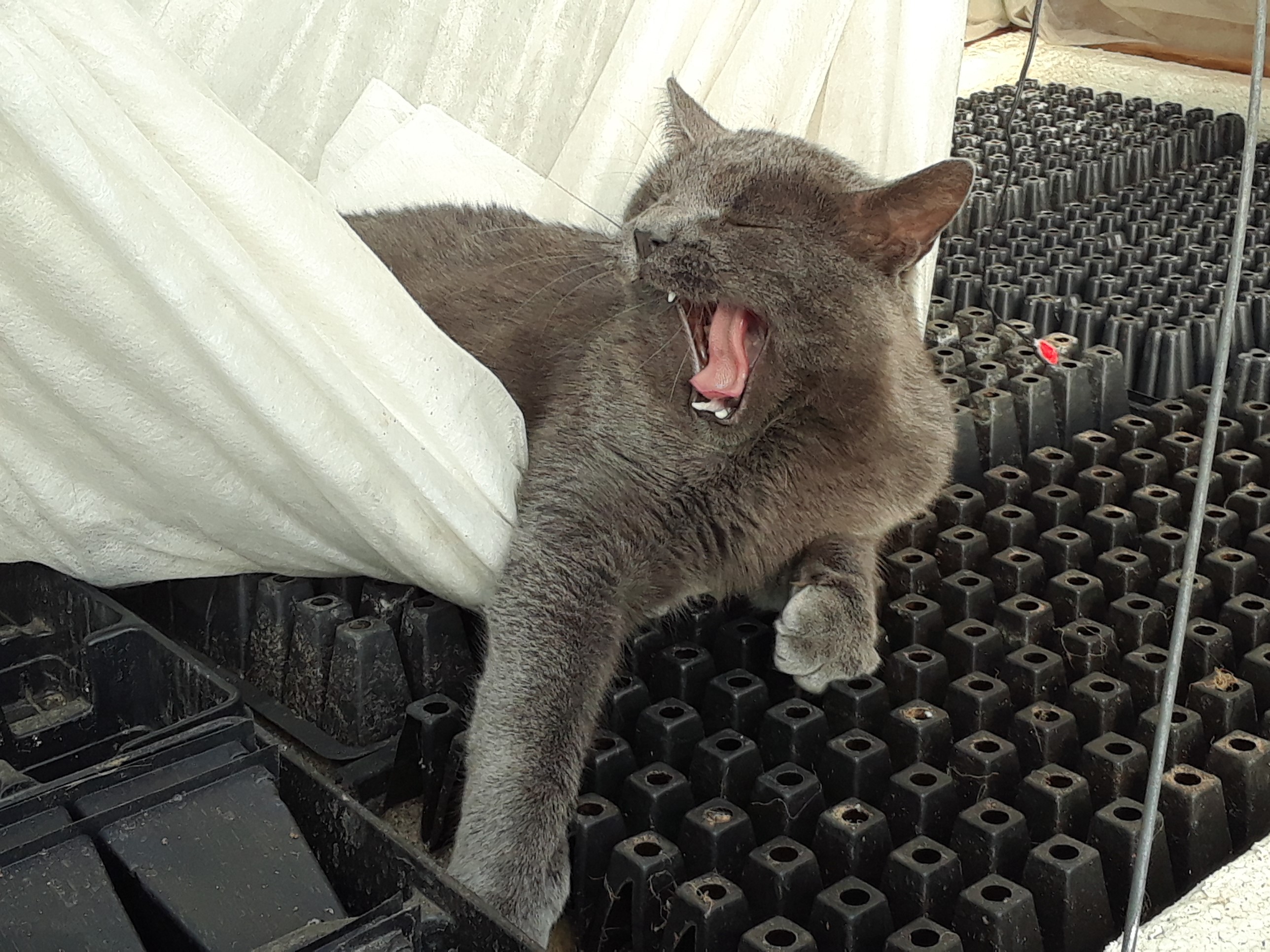 On the cold fall days the cats move into the warmth of the greenhouse.
