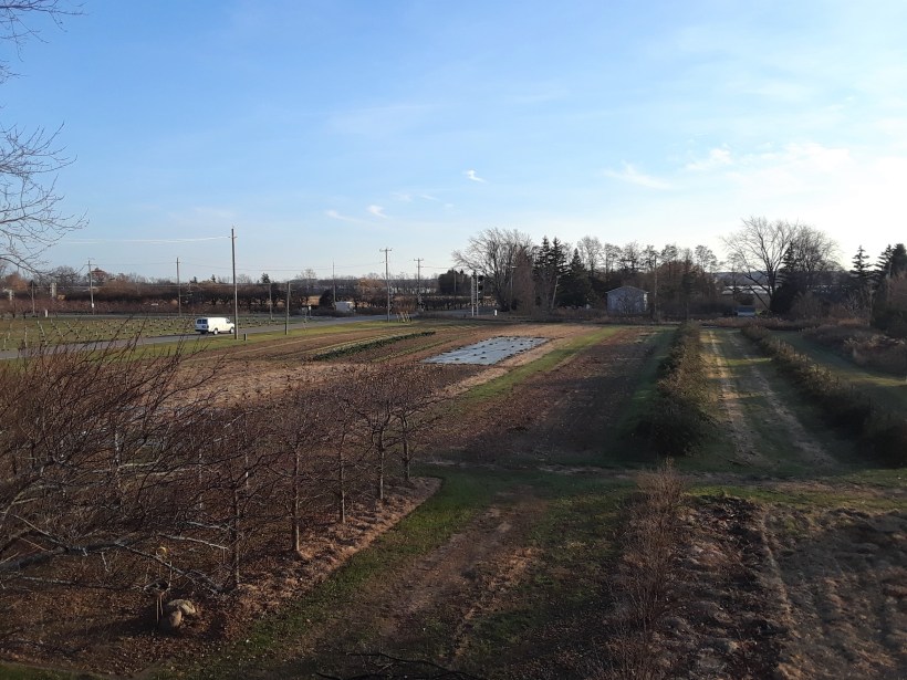 I was on the roofs of the barns yesterday cleaning the eavestroughs, so I snapped this picture – an overview of one of our fields. The light coloured rectangle in the centre is our occultation tarp (see https://thiessenfarms.com/2017/04/12/occultation/ for an explanation). That is still some kale growing to the left of the tarp – the cold weather & frosts have made it even more tasty.