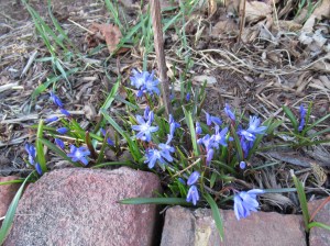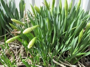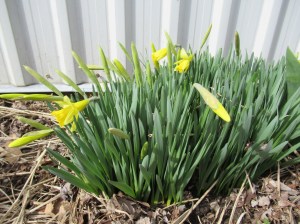They were seeded in the cold ground on March 27 – so that’s about 2 and a half weeks they needed to germinate. Not bad for a cold, slow spring. As soon as the plants are a bit bigger, we’ll seed the next batch. By then the weather will be warmer so they will sprout much quicker. If we seeded them already, they would catch up to the first ones & we would likely be picking both plantings of snow peas at the same time. We don’t want that!