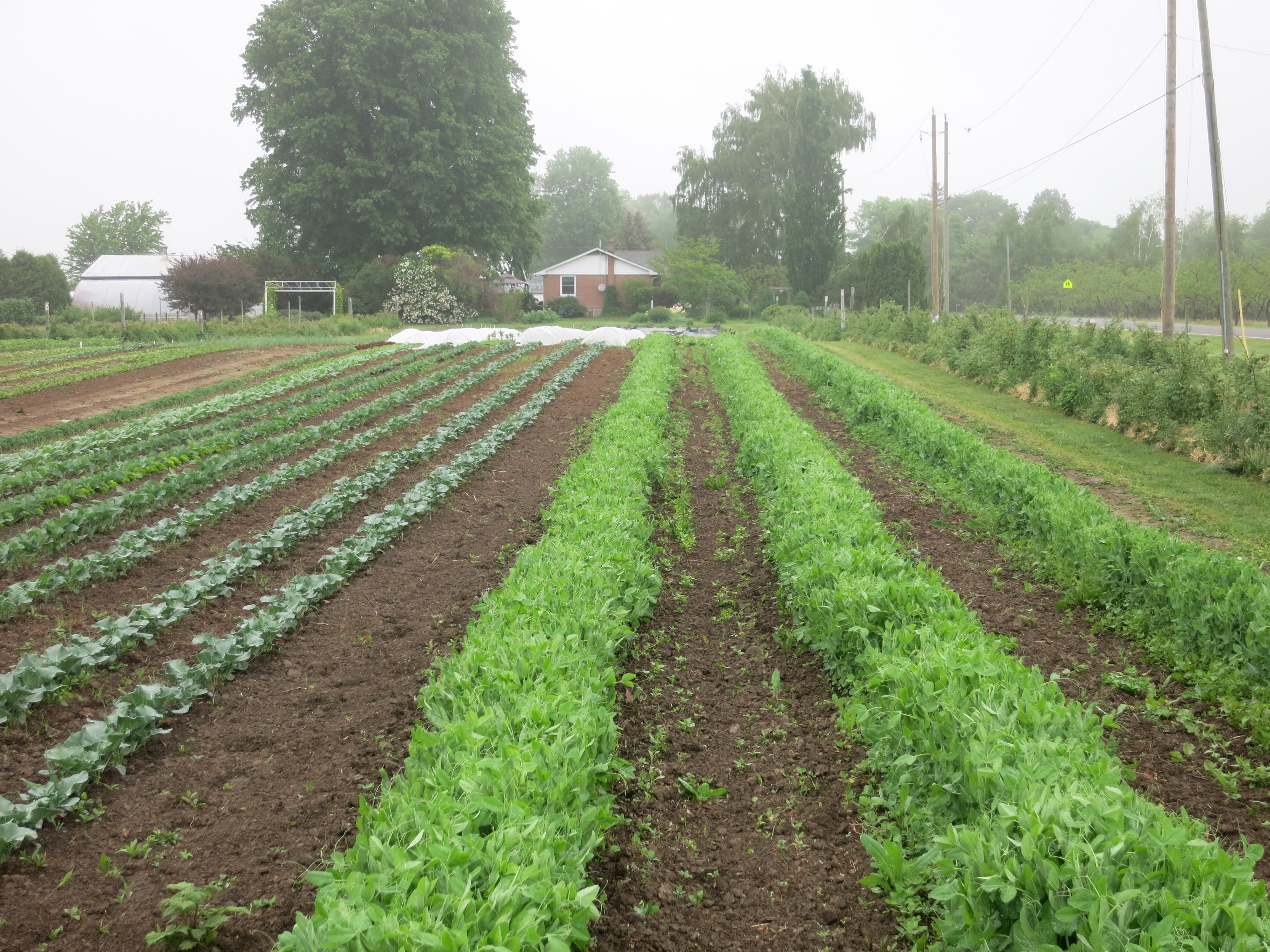 Most years we do 3 plantings of snow peas (each planting is 200′) which stretches the harvest season out for a few weeks. This year we debated about planting them at all. None of us would miss the picking – but our CSA members & market customers sure would miss the peas! And so we compromised and decided to plant just once. Enough for our CSA boxes for 1 week or maybe 2, and that’s it.