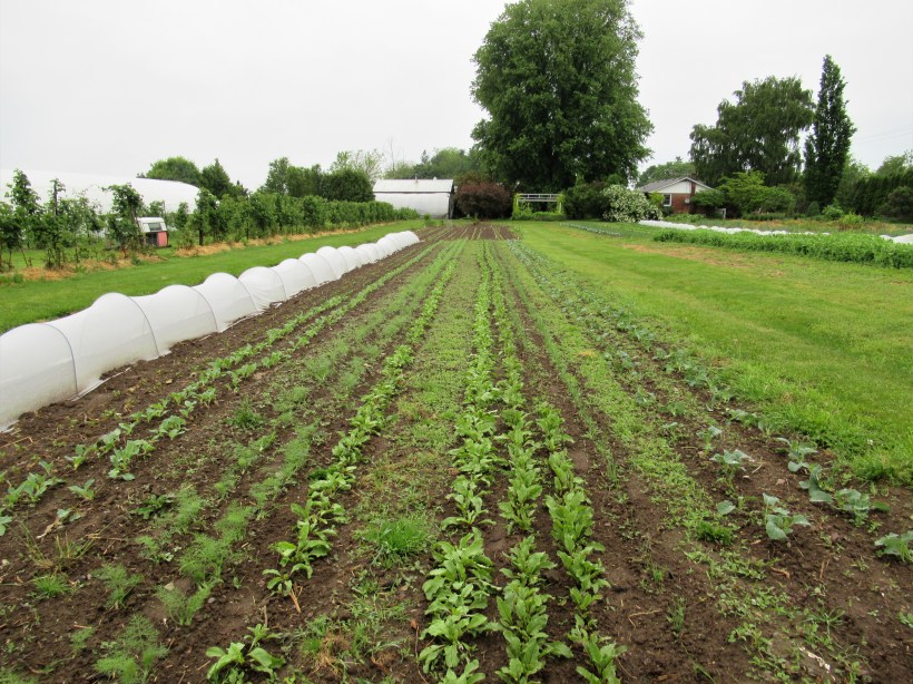 So far we have been able to keep the weeds under control, but that carpet of green springing up between the rows is really scary!