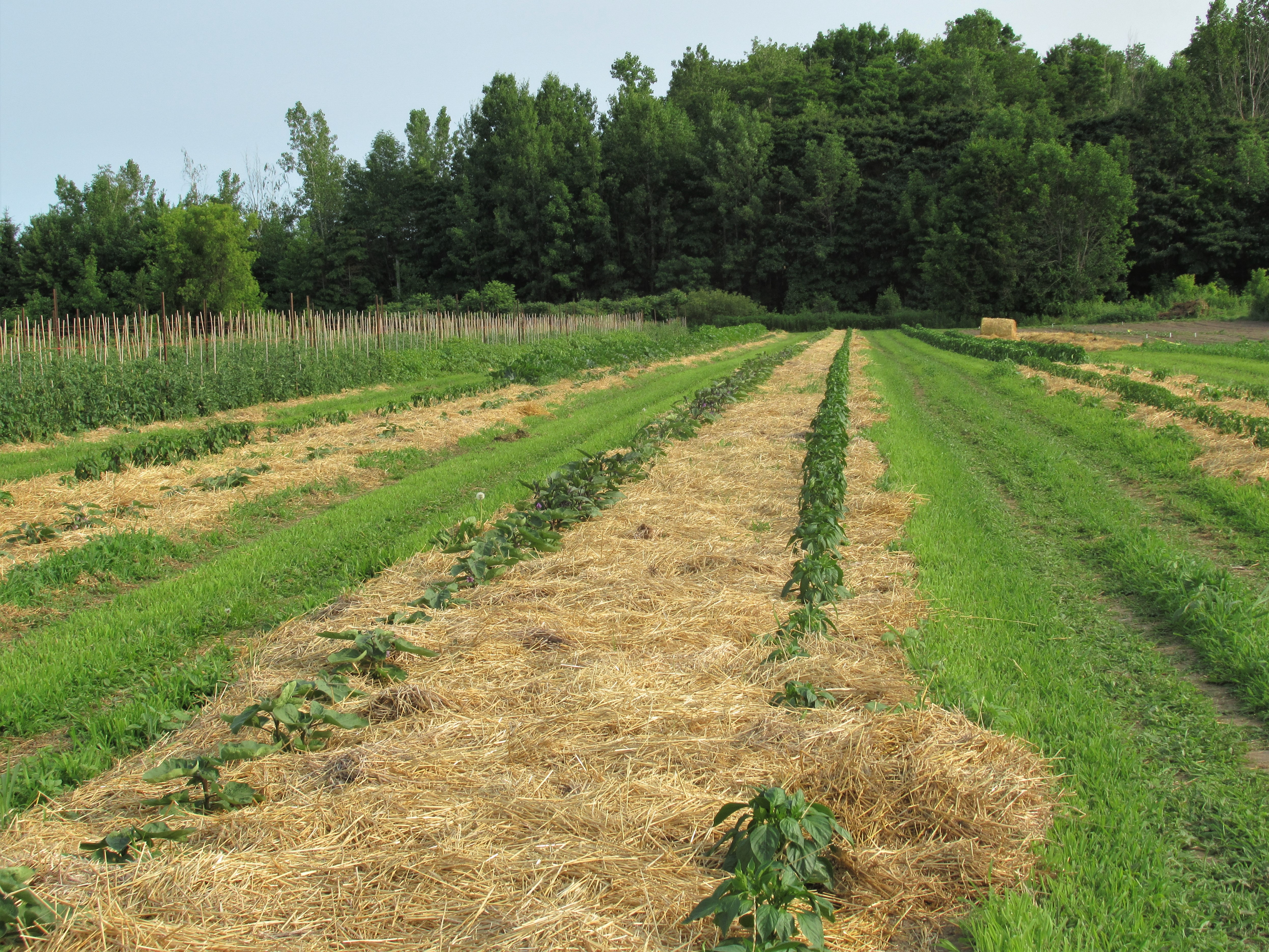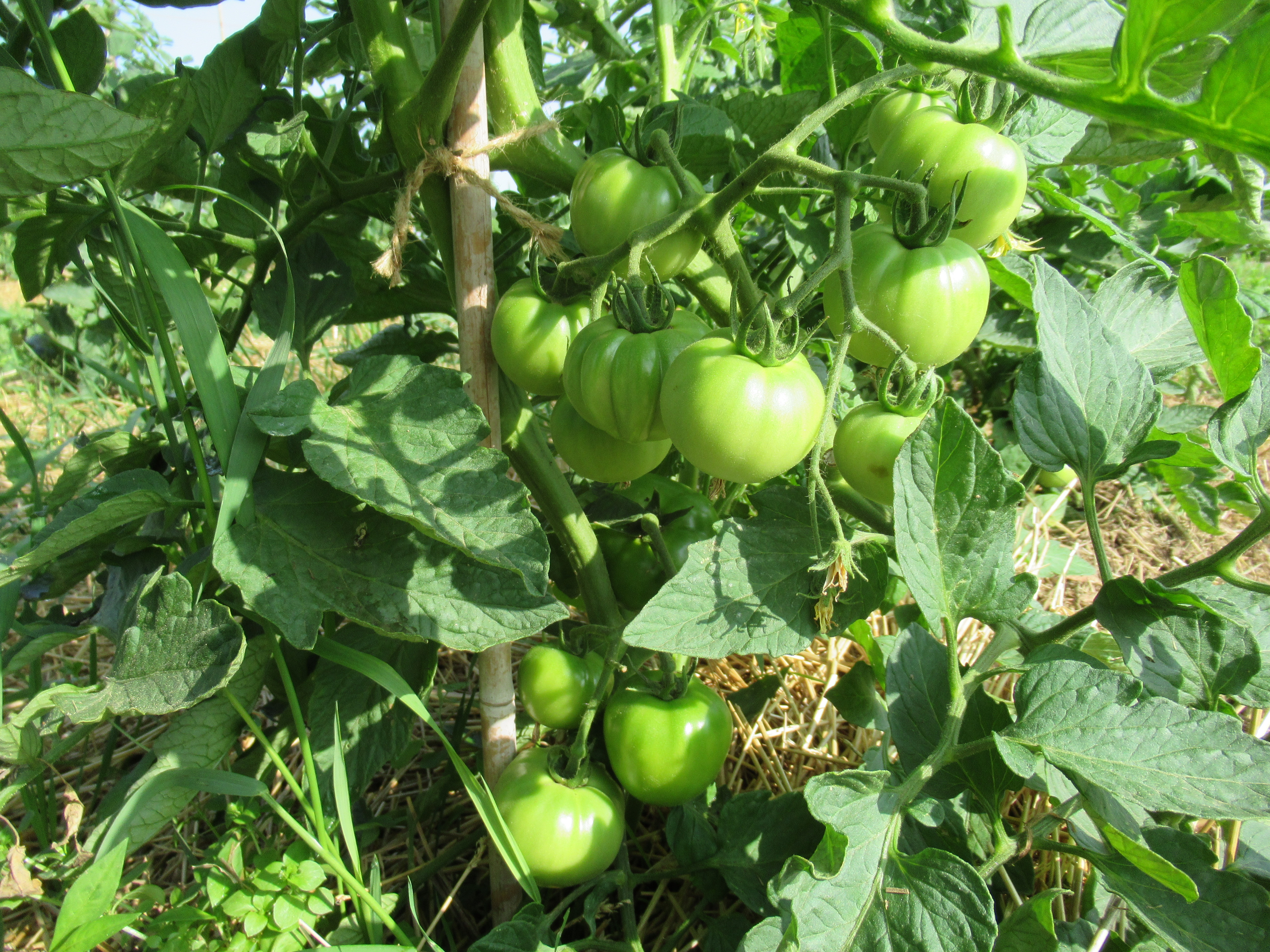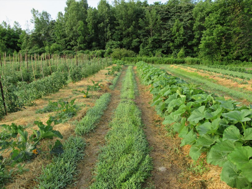 The zucchini plants that the insects ate are making a comeback (to the left in the picture) – some of them anyway, but of course the harvest is delayed. We also transplanted a new batch of zucchini plants into the field today.