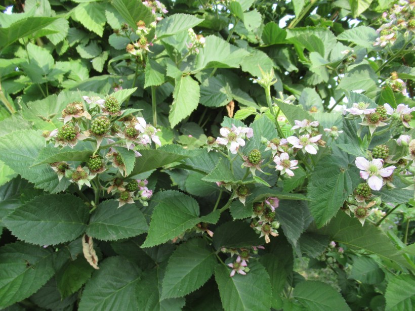 The blackberries are almost finished blooming and little berries are already forming. In about a month they will be ripe!