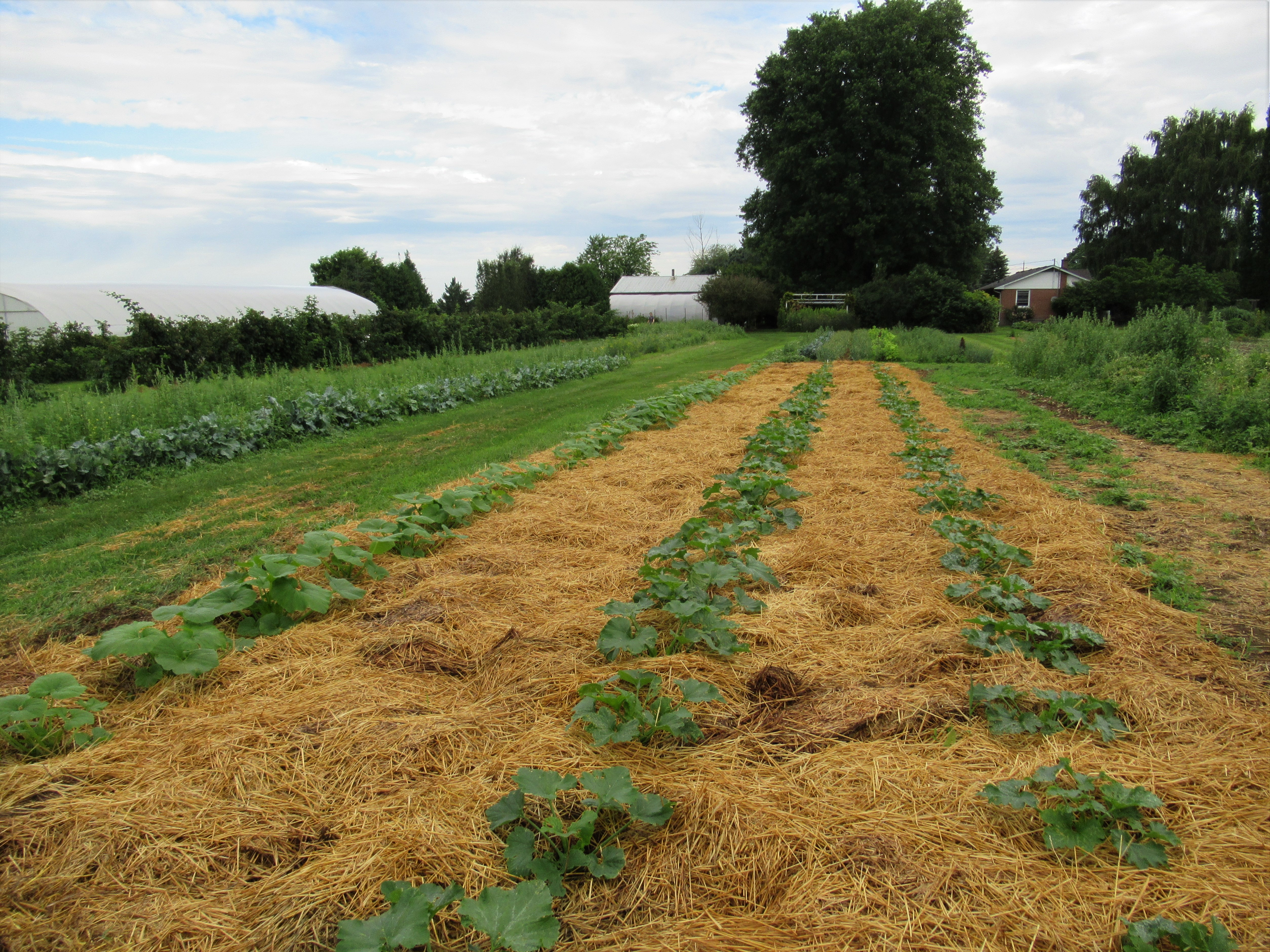 The new zucchini patch is mulched, and growing well thanks to the 1″ of rain we received last week.