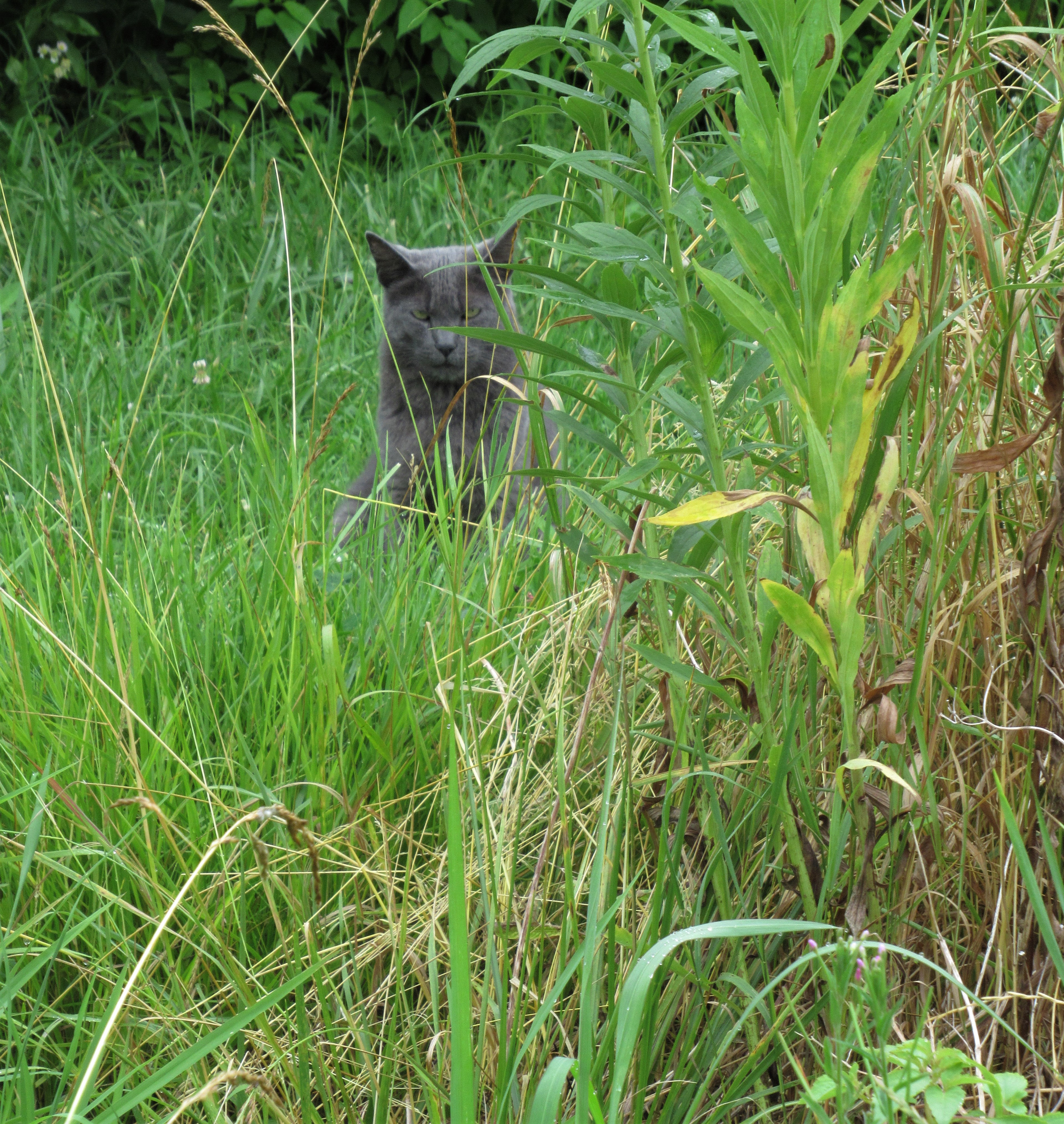 Not everyone hates the weeds & rampant-growing grasses! Flynn enjoys the cover they provide for his hunting expeditions. Flynn does not enjoy me disturbing his hunting!