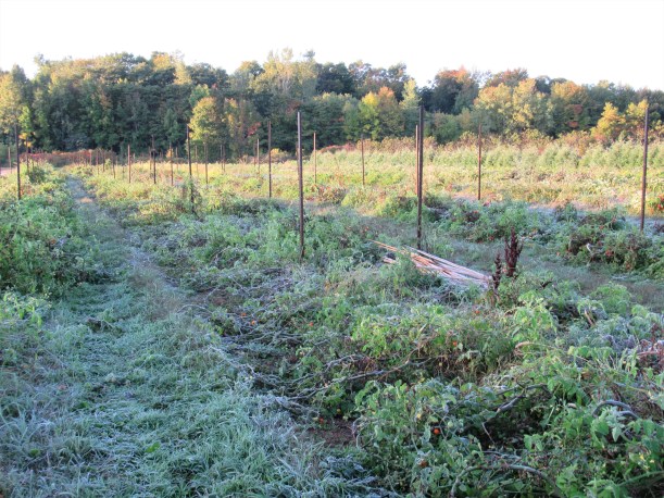 But the sun shone and burned off the frost in a hurry and there was very little damage. Only the bitter melons were finished off (but the plants were about done anyways), and the sweet peppers & eggplant are showing some frost damage. Everything else looks fine – and for this we are thankful! While our CSA is finished, we still have 4 more weeks of farmers markets, and we need some product to sell.