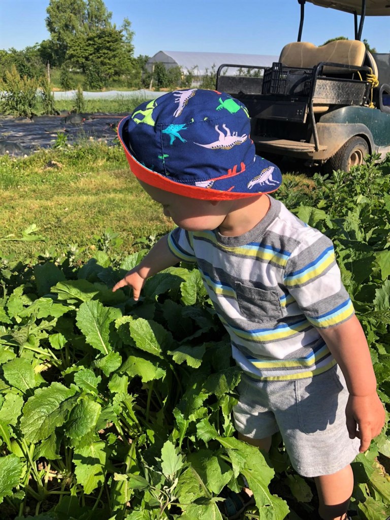 • Salad greens this week include lettuce mix, baby kale, arugula. The extreme heat of late has not been kind to the spinach – it quickly becomes oversized and tough and goes to seed. So there will be none this week. But there will be more coming (weather permitting!). Lettuce can also become bitter due to the heat – but so far it’s still tasting good.
