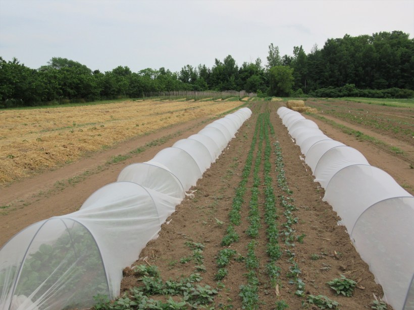 • There will be broccoli in your CSA share this week – either the broccoli we are all familiar with, or  Chinese broccoli which is less common. While both broccolis have a similar taste, they look different. Broccoli has thick, crisp stalks with a large head of green florets. Chinese broccoli has thinner stems, large flat leaves and tiny florets. It is best after a quick steam, saute or stir-fry. We have some of both ready for harvest, but probably not enough of either. Mother Nature doesn’t seem to care that we would really prefer 140 same-size heads of broccoli, or 140 even bunches of Chinese broccoli for our CSA boxes this week. Once we start picking tomorrow we’ll see what we get & divide things out accordingly! Either way, your broccoli will be fresh & delicious!