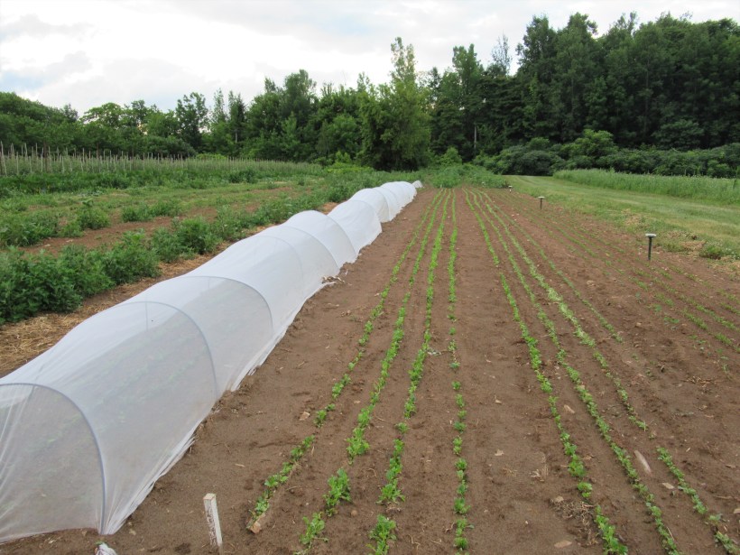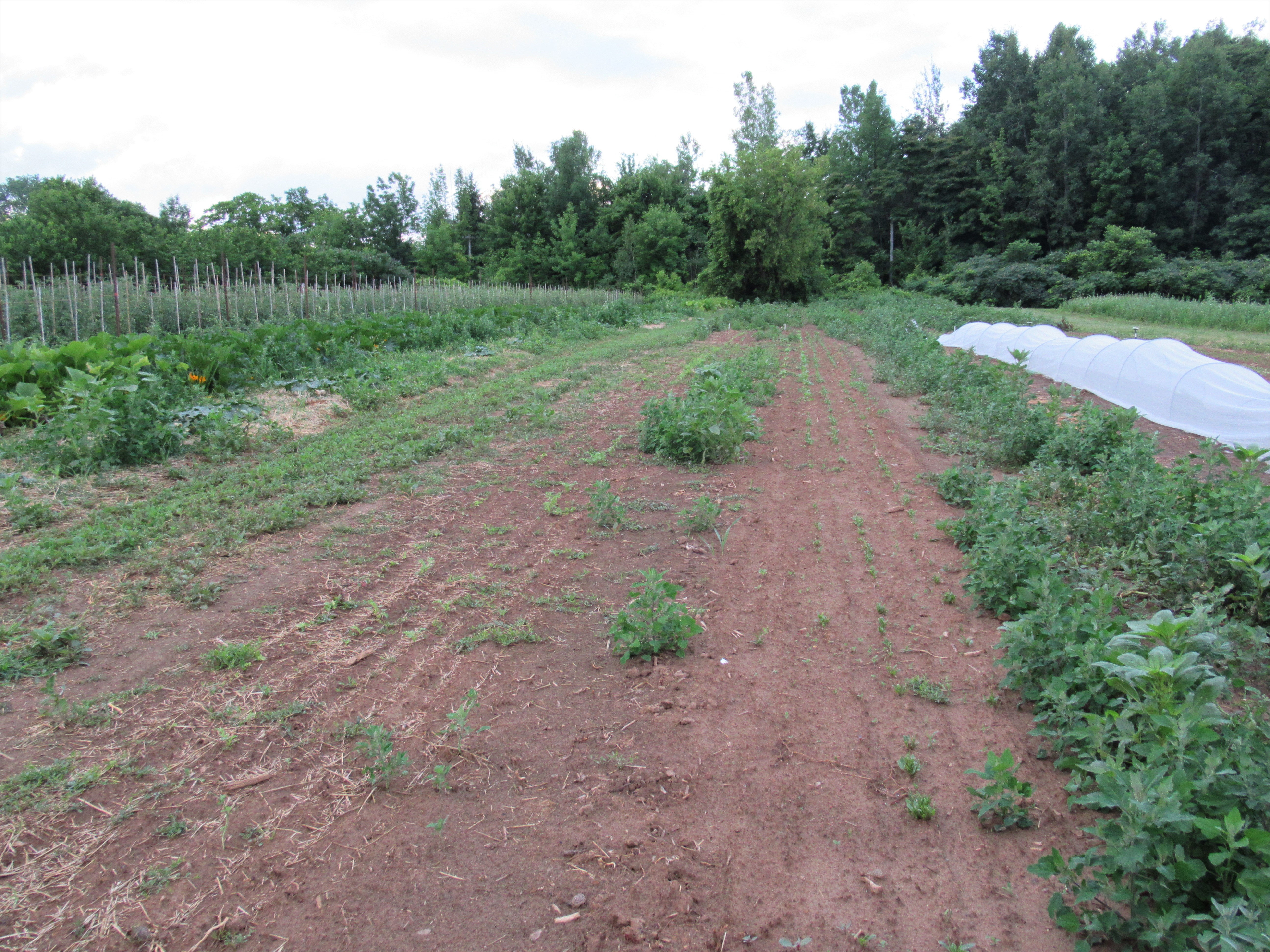 • Our salad greens are the most affected by the weather. The lettuce gets stronger flavoured and even bitter, spinach, bok choy & arugula go to seed rather than grow lush & large, and baby kale  gets tougher. ( for example … only a few CSA boxes contained a small bag of spinach last Friday. Where we would normally expect to harvest 150 bags, we picked about a dozen.) But we will do our best to find some tasty greens for the box this week.
