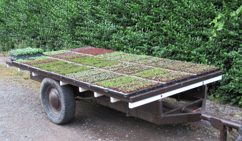 Out in our yard sits a trailer full of vegetable seedlings ready to be transplanted into the field this week.