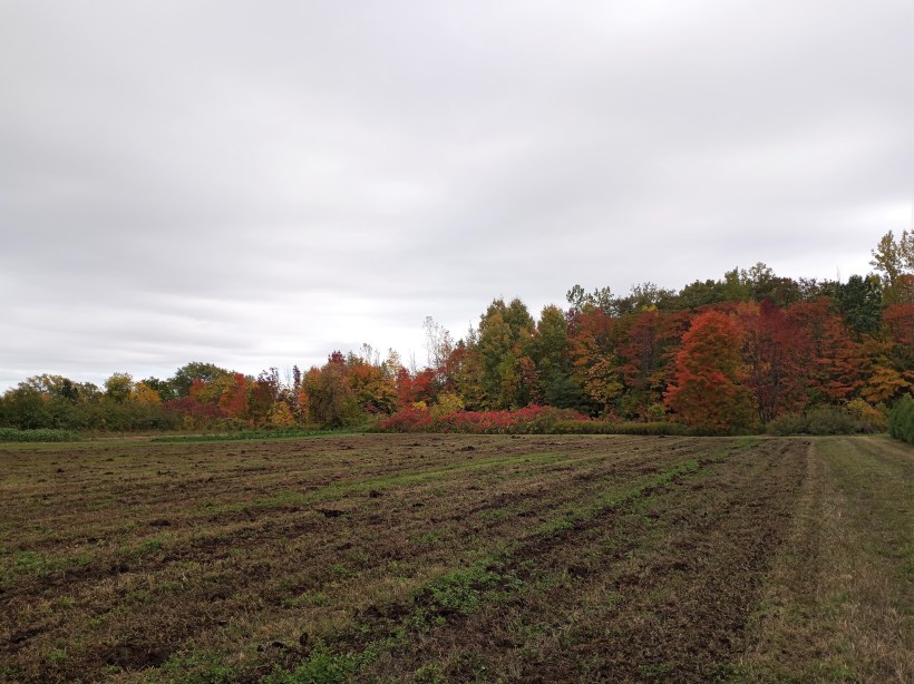 Here is our squash patch from this year. After harvesting the squash we mowed everything down, lightly tilled the soil & seeded a cover crop mixture. It is just germinating now. Hopefully we get enough nice weather yet that it will grow larger and cover the soil for the winter. In spring we’ll work it down and plant other vegetables here.