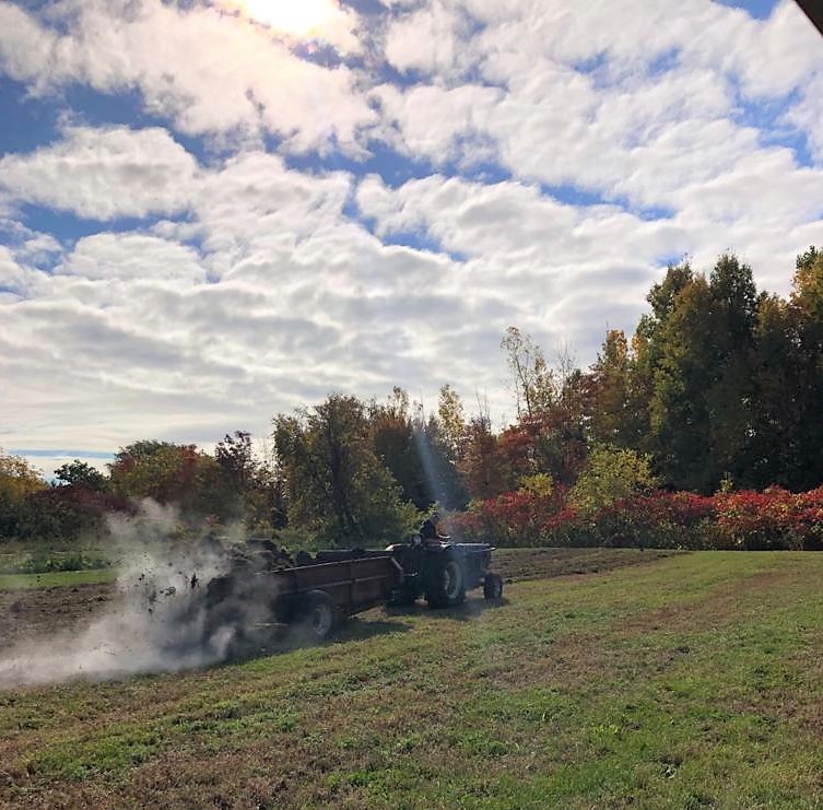 Manure is an important part of our farm fertility program. Manure provides nutrients for the soil which in turn feeds the vegetables we grow. It also adds humus or organic matter which improves the texture of the soil and increases its ability to retain moisture (which is very important during dry seasons like this past summer). It can be difficult to source, but we were fortunate to find a new supplier this fall and received 6 large truckloads last week – about 180 tons!