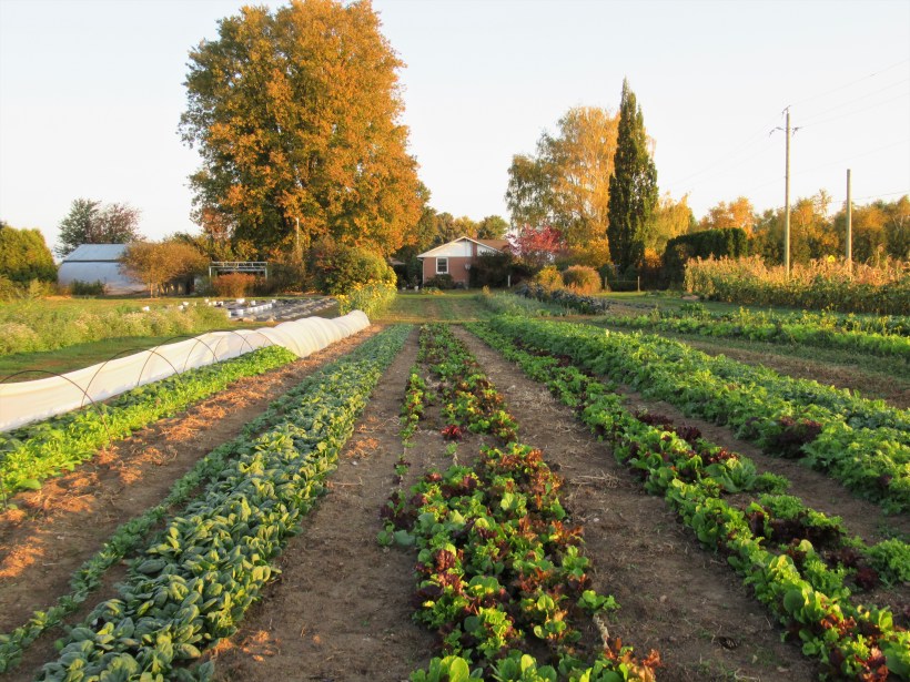 Still vegetables growing in the field – lettuces, spinach, arugula, beets …