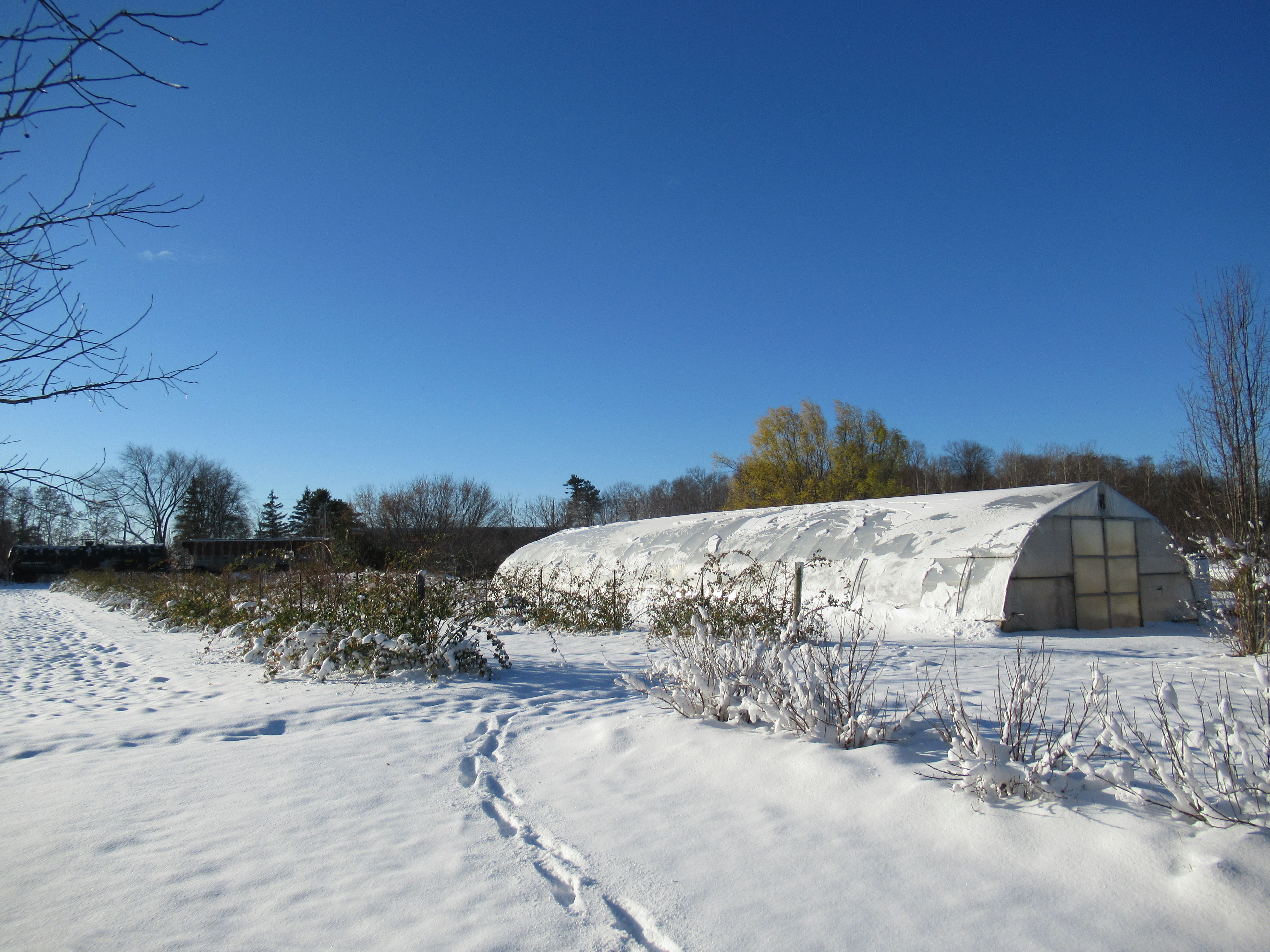 We tucked it to bed for the winter under a thick covering of straw. We chose a morning when the ground was frozen but there was no snow. The straw will keep the ground frozen which will prevent the garlic cloves from being pushed out of the ground during the freezing/thawing cycles we experience during our winters. Rodents may burrow into the straw, but not into the frozen soil underneath.