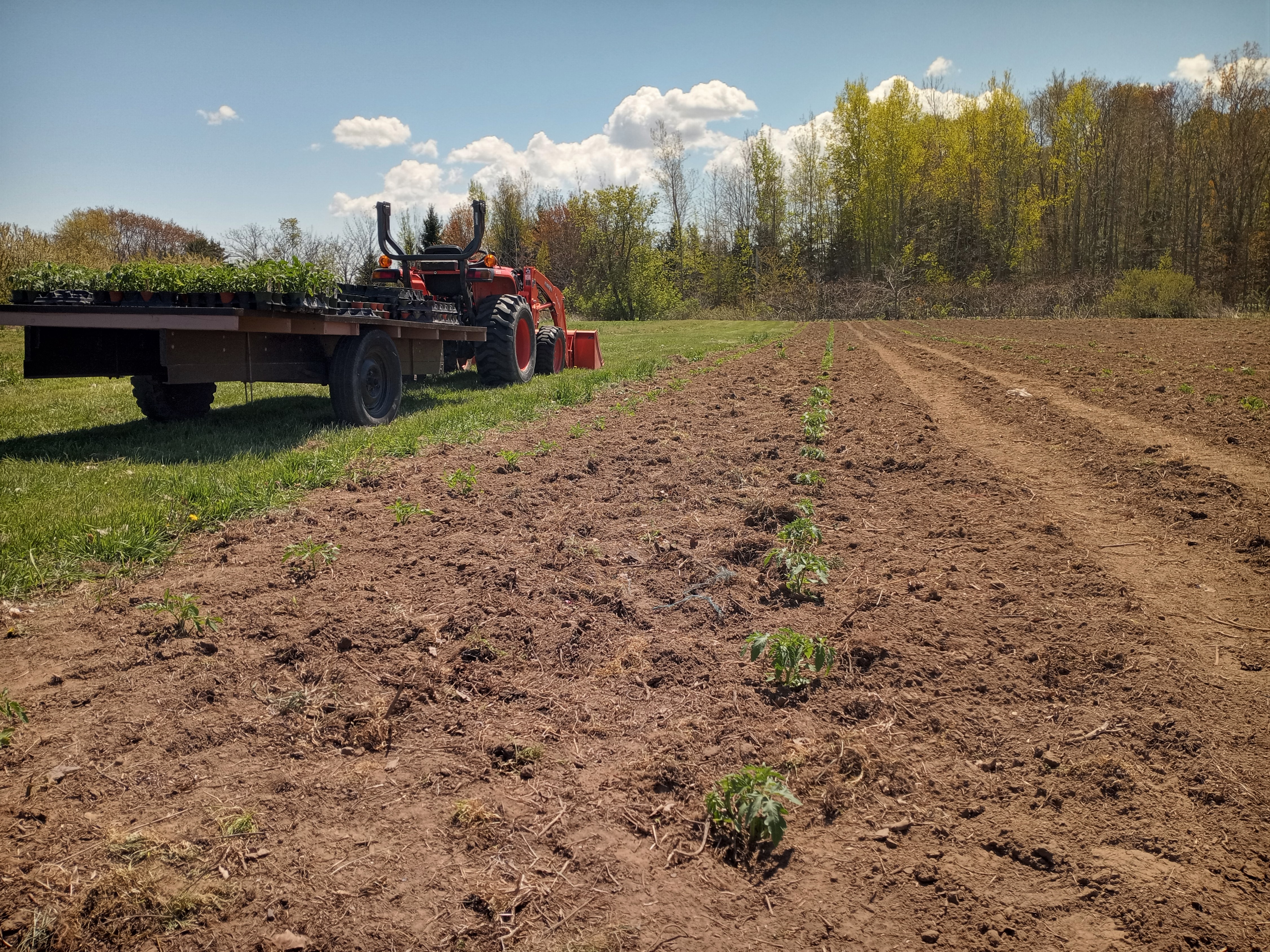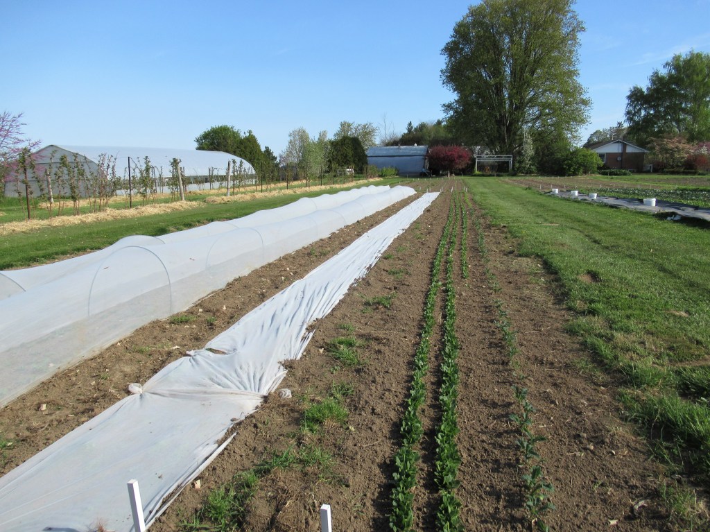 Along with all the spring crops – radishes, salad turnips, spinach, pak choy, broccoli, onions, snow peas … the first of the heat-loving vegetables are in. We planted tomatoes this week, the earliest they’ve gone out to the field in quite a few years.