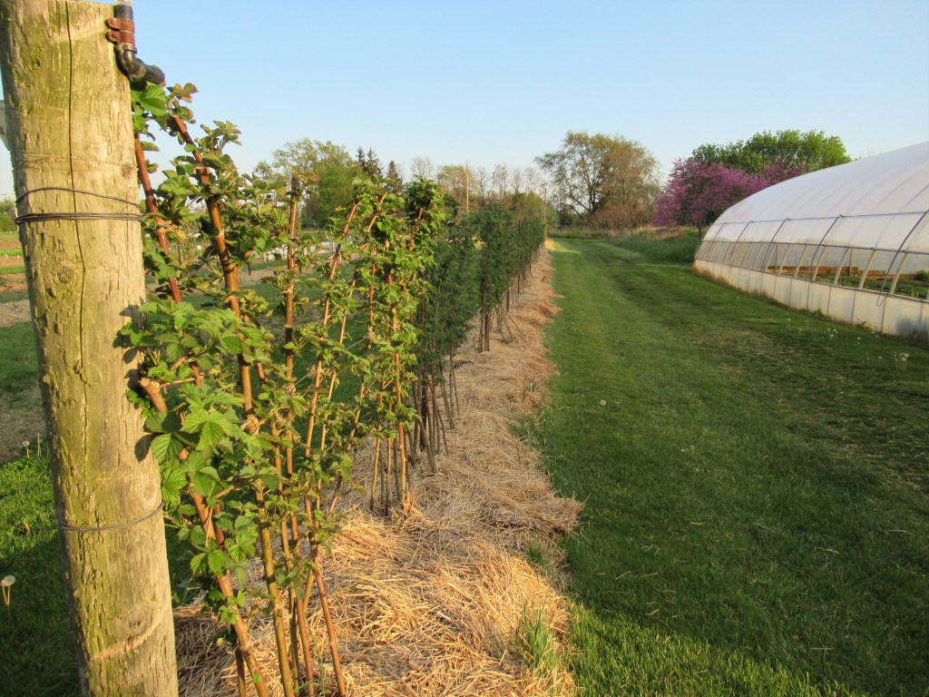 The blackberries are leafing out and growing well. While they are not old, our blackberries do have some disease issues so we set out 2 new rows – about 100 plants – this spring. In about 3 years they will be in production and we will remove these older ones.